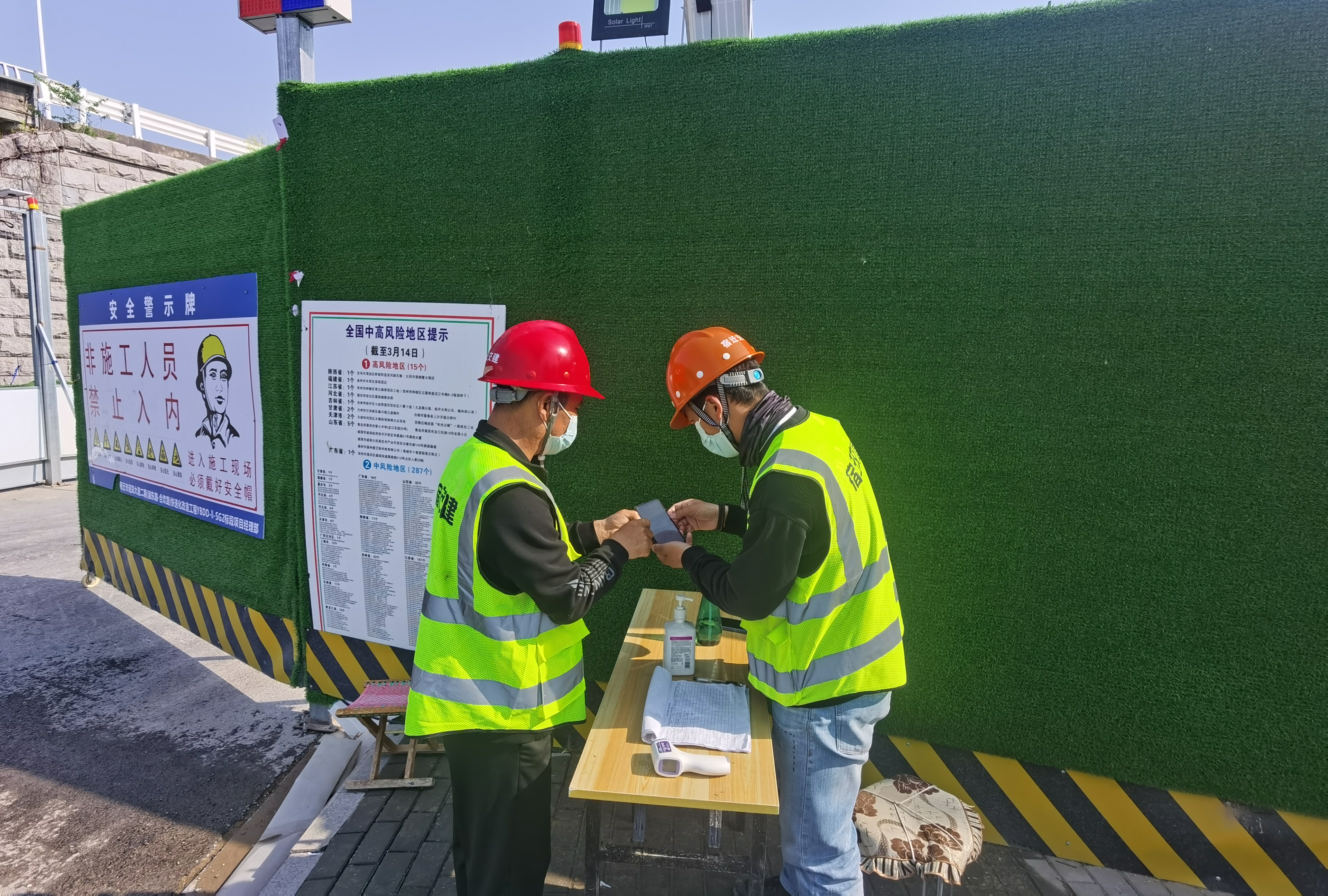 做好疫情防控,狠抓项目建设。4月11日上午,在迎宾大道二期快速化改造工程2标段入口处实行了严格的管控措施,对作业工人完成体温测量、查验两码及48小时内核酸检测阴性证明等检查步骤后,才准许入内。