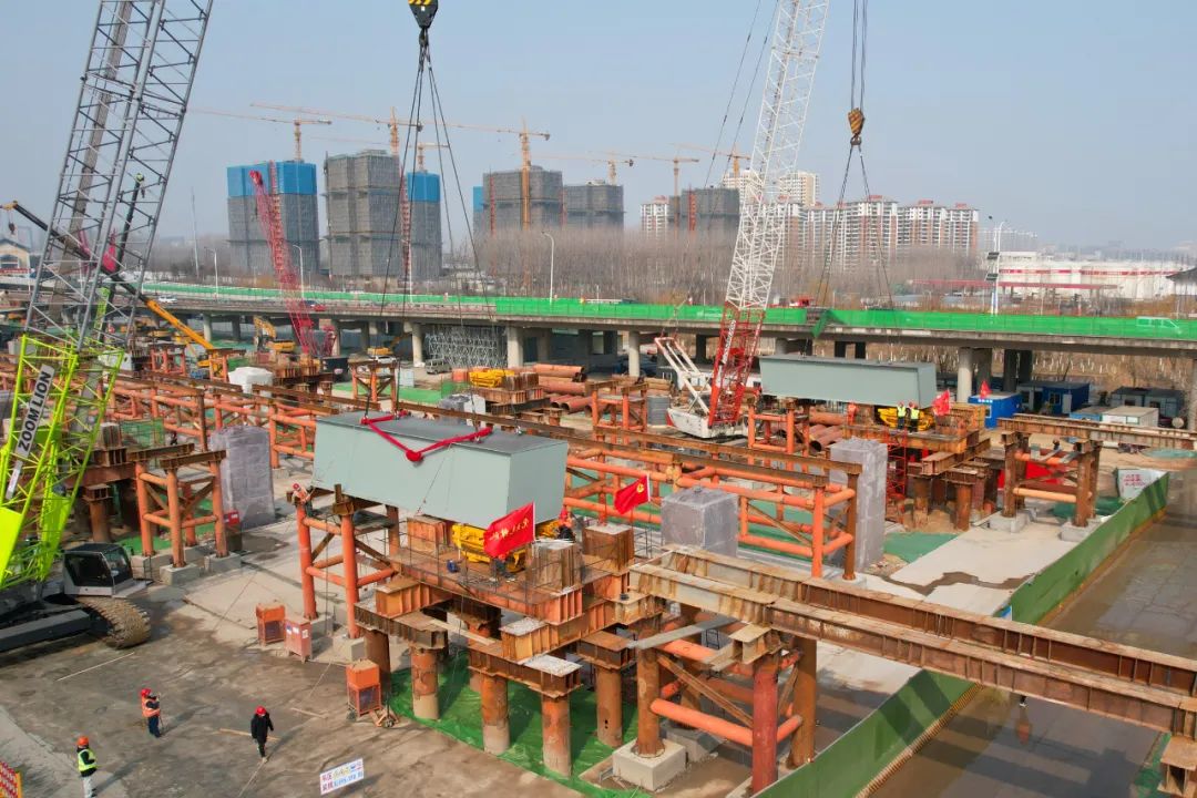 【高铁公司】北京路快速化改造工程跨京杭运河特大桥首节钢梁顺利吊装