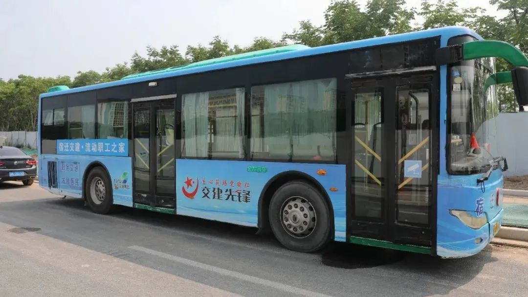 在公司多个在建项目现场,大家都能看到那辆“流动职工之家”。“宿迁交建·流动职工之家”由公交车改造而成,车内设置17张独立座椅、3张餐桌,配有空调、冰箱、饮水机、应急药箱以及容纳280余本书籍的“红书角”,可为一线职工提供用餐、休息、学习等服务。启动该项目是宿迁交建党总支将职工困难放在心上、职工需求放在首位的生动缩影,解决了服务职工“最后一公里”的问题,为重点项目大干快上提供了坚实力量。
