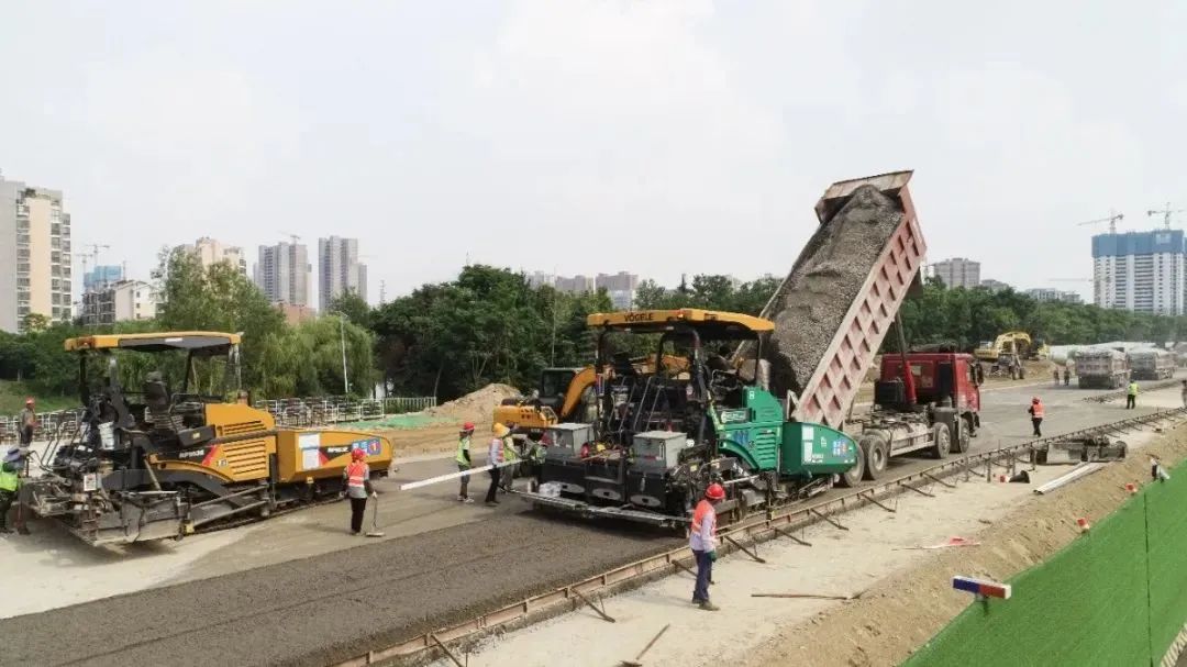 在北京路快速化改造工程2标段施工现场,建设者们顶着太阳,脚踩着沥青路面,身后是翻滚着沥青料的摊铺机,他们汗流浃背,在烈日下仍然以饱满的热情和良好的工作状态投入到沥青摊铺工作中。
