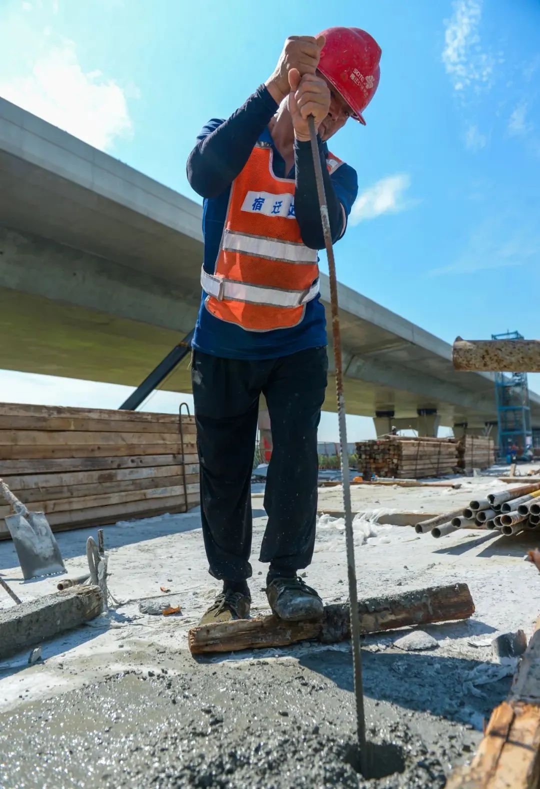 建设者不惧高温“烤”验,加紧施工作业