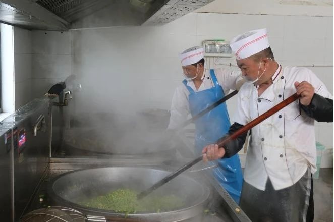 厨房间工作人员精心选购新鲜食材、认真清洁餐具。厨师们挥舞着铲勺,烹饪出一道道营养丰富的菜肴。他们用美味的饭菜和贴心的服务,为坚守的公交人提供有力的后勤保障。