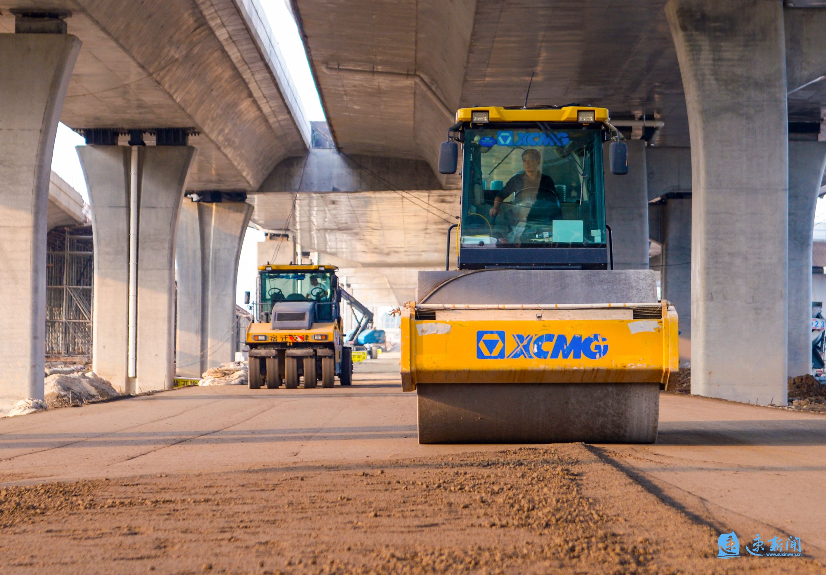 10月15日,在宿豫区酒都路快速化改造工程现场,施工器械不停运转,工人正在紧张施工,一派热火朝天的景象。