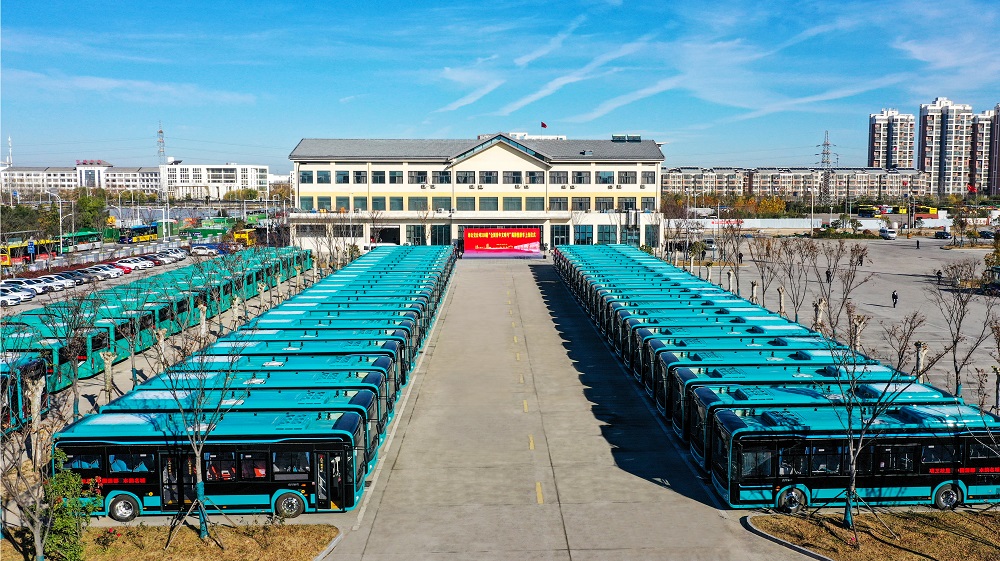 “新能源公交车内没什么异味,不像以前烧汽油、柴油的车,车厢里都有汽油味或者柴油味,所以乘客坐在车里很舒心。除此以外,新能源公交车还能减少废气排放,保护宿迁的生态环境。”宿迁市城市公共交通有限公司营运部负责人说,公司近两年持续增加新能源公交车保有量,截至目前,市区新能源公交车已达1081辆。