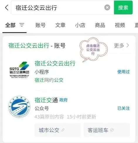 • 微信搜索“宿迁公交云出行”或手机扫公交站台网约公交二维码,进入小程序。