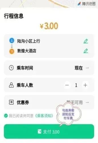 “‘网约公交’运营时间为上午7点至下午6点,票价采用‘一票制’,3元/人次。我们鼓励乘客进行线上支付,先付后乘。需要注意的是,乘坐‘网约公交’的群众是无法享受免费乘车或刷卡优惠等政策的。”