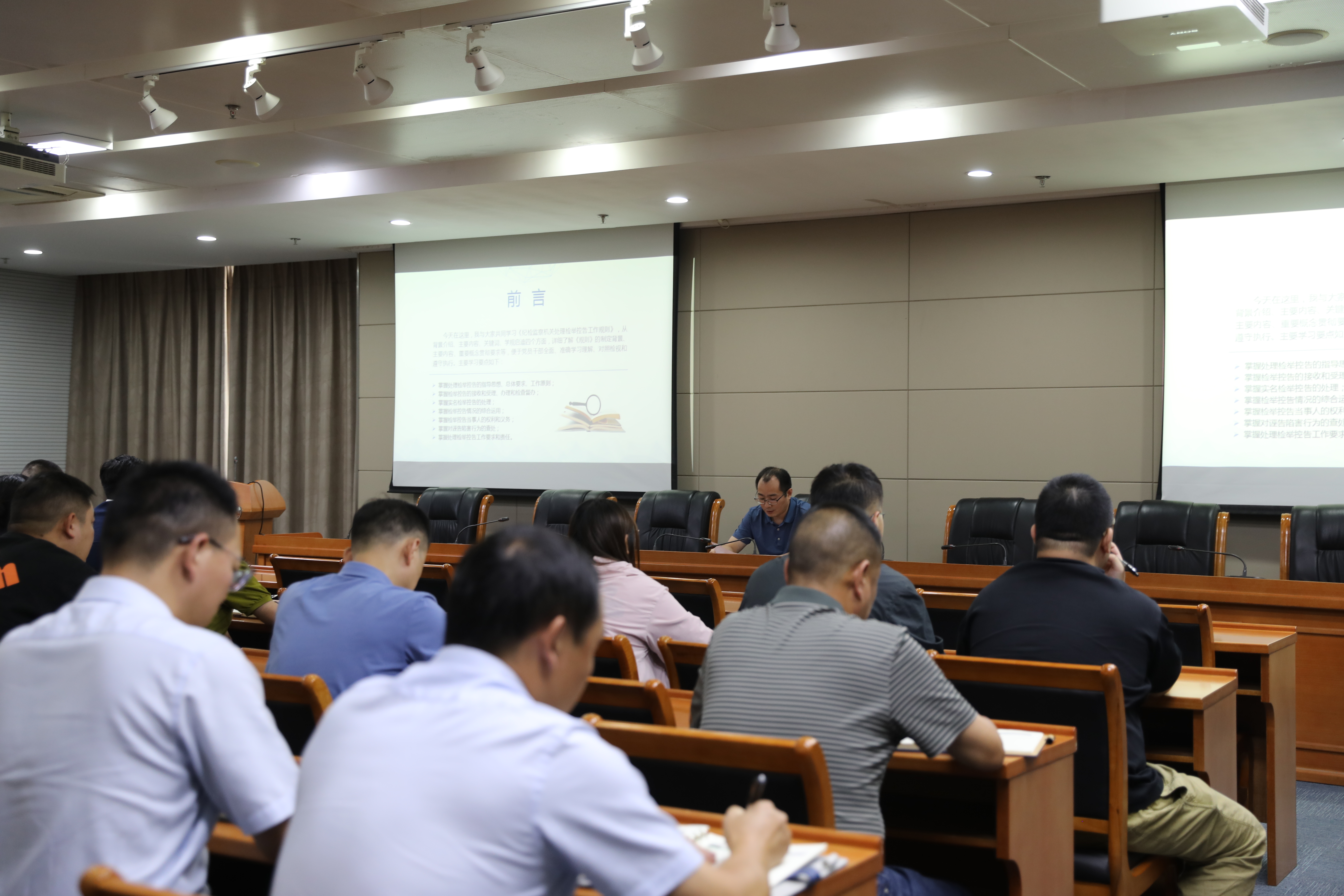 课上,授课人结合工作实际,从掌握处理检举控告的指导思想、总体要求、工作原则,掌握检举控告的接收和受理、办理和检查督办,掌握实名检举控告的处理,掌握检举控告情况的综合运用,掌握检举控告当事人的权利和义务,掌握对诬告陷害行为的查处,掌握处理检举控告工作要求和责任等七个方面,为大家作了生动讲述。