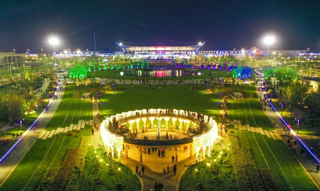 4月19日,宿迁市高铁商务区酒都广场正式开园迎客。当晚,该广场上演了《第一江山春好处》水景音乐剧,吸引了众多市民和游客纷纷前来打卡拍照。