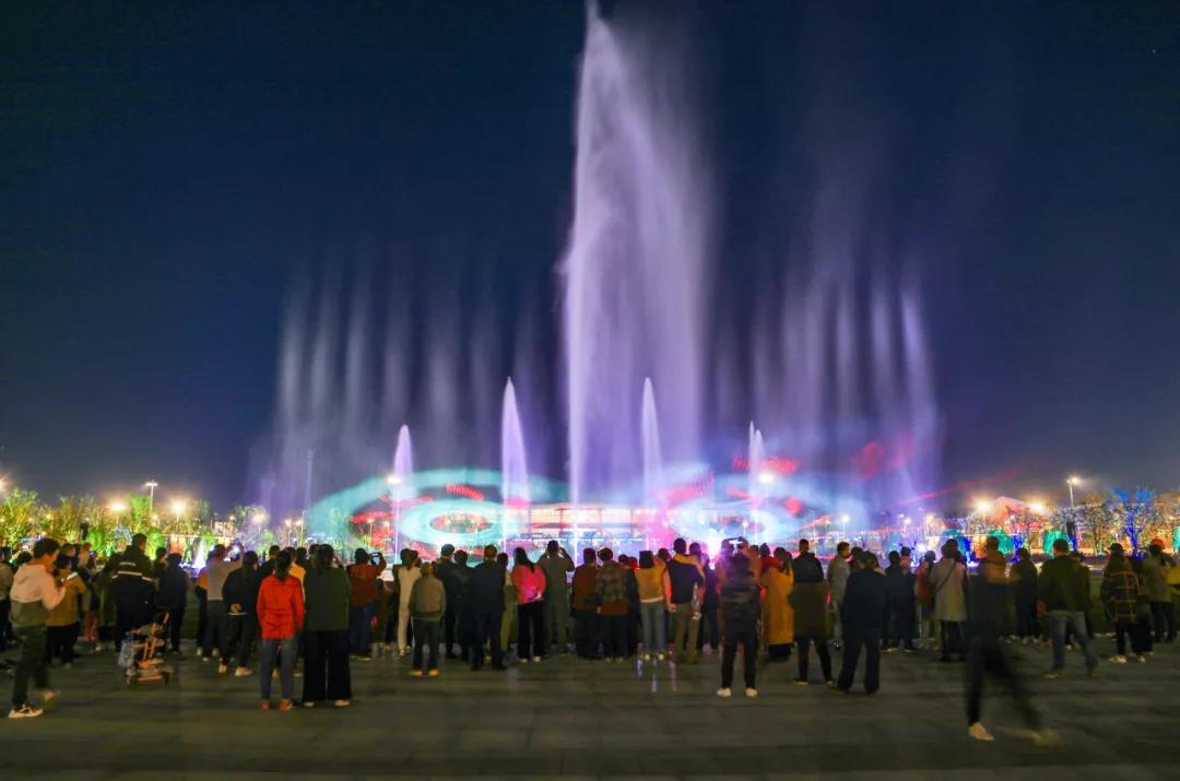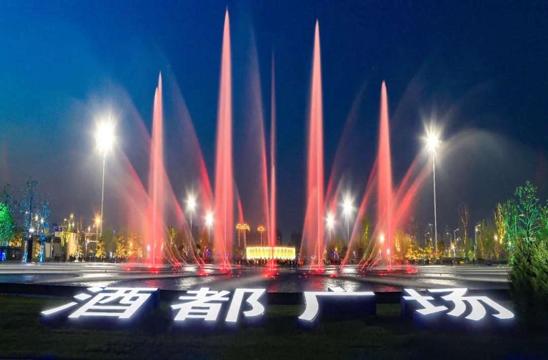 酒都广场喷泉“炫” 市民游客打卡“热”