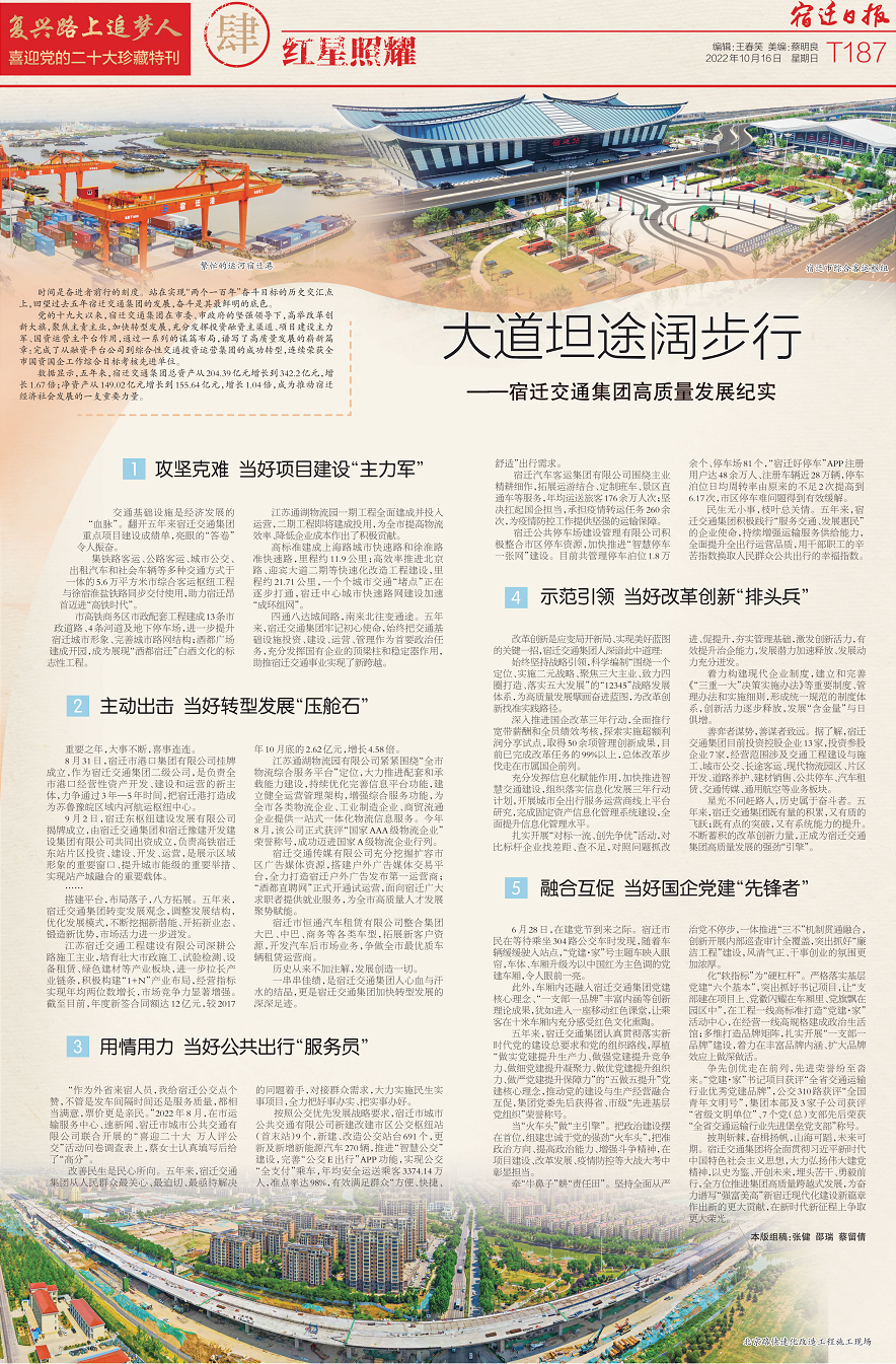 10月16日,《宿迁日报》推出喜迎党的二十大珍藏特刊,以《大道坦途阔步行——色漫