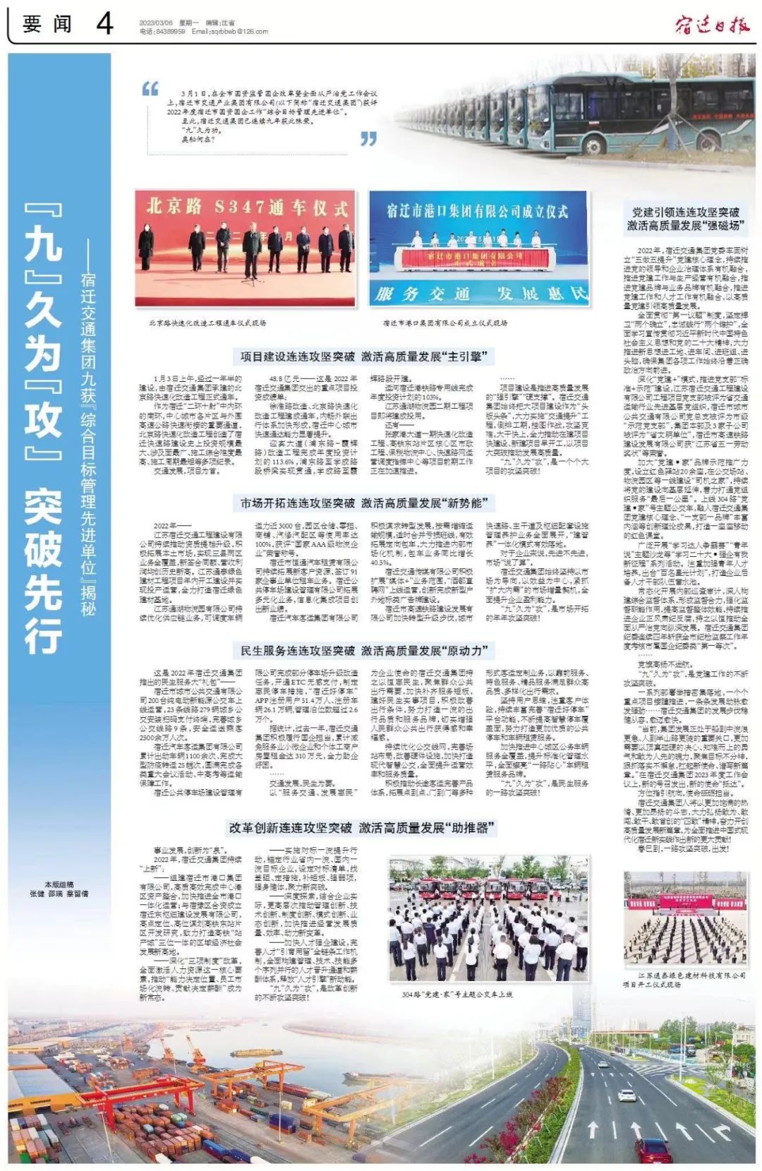 ”)获评2022年度宿迁市国资国企工作“综合目标管理先进单位”。