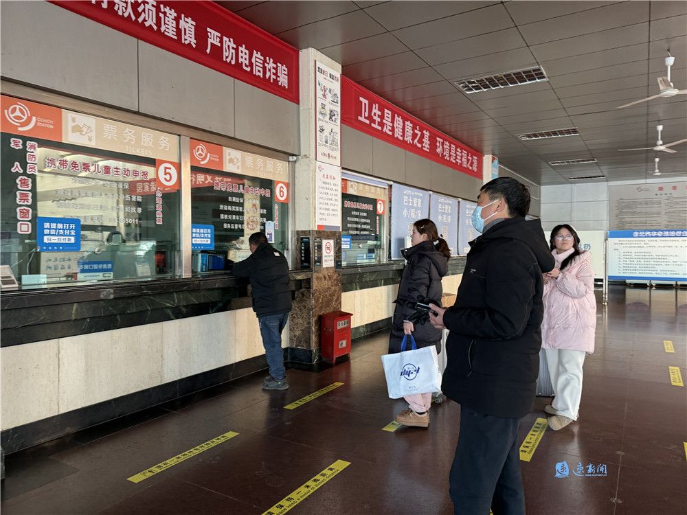家住宿城区蔡集镇的张李,今年春节,他的父母因工作原因无法返回宿迁,这让他决定提前前往苏州与他们团聚。他说:“父母在哪,家就在哪。”这句话,简单却饱含深情。1月26日上午9点多,张李就到达宿迁汽车客运站等待班车。过年前这段时间,张李想好好照顾父母,“过年前,家里肯定需要收拾一番,还有父母的一日三餐,平时他们都是买盒饭或是随便吃点应付,回到他们身边后,我想做饭给他们吃,好好照顾他们几天。”