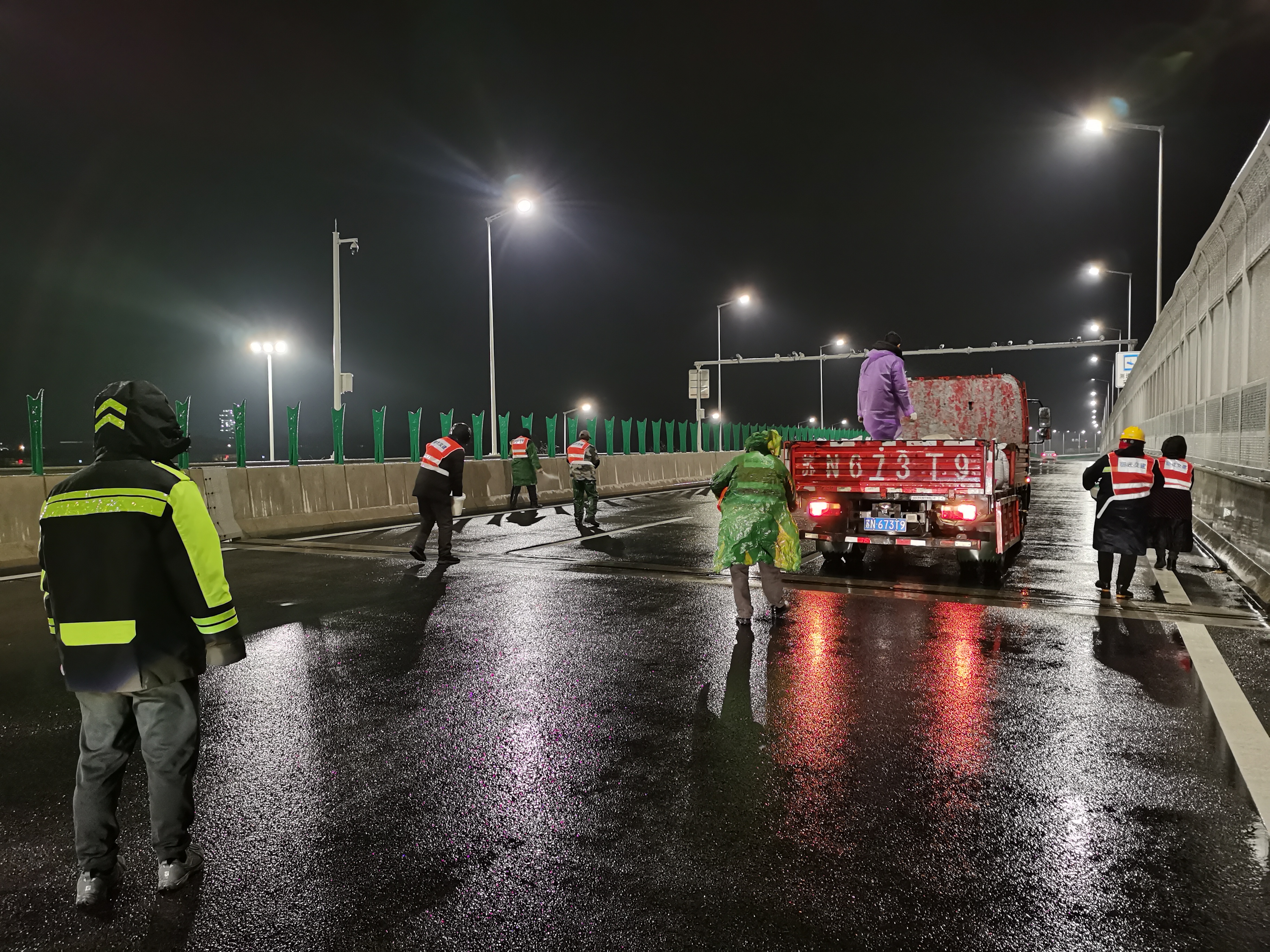 宿迁交建立即启动雨雪冰冻天气应急预案,出动机械70余辆、人员180人。针对管养道路不同路况特点制定对应处置方案,第一时间对主要路段进行预防性融冰撒布处置,对结冰路段启用热水喷洒和滚雪涮跟扫、人工辅助散盐的措施,积极组织人员对道路进行破冰除障,确保车辆进出安全。同时,对道路标志、路灯等设施进行检修和维护,提高夜间行车可见性和安全性。