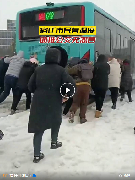当公交车因积雪难以前进,乘客、路过市民和周边公交场站工作人员,从四面八方赶来助力。驾驶着这个车辆的司机,心头一定是暖的。