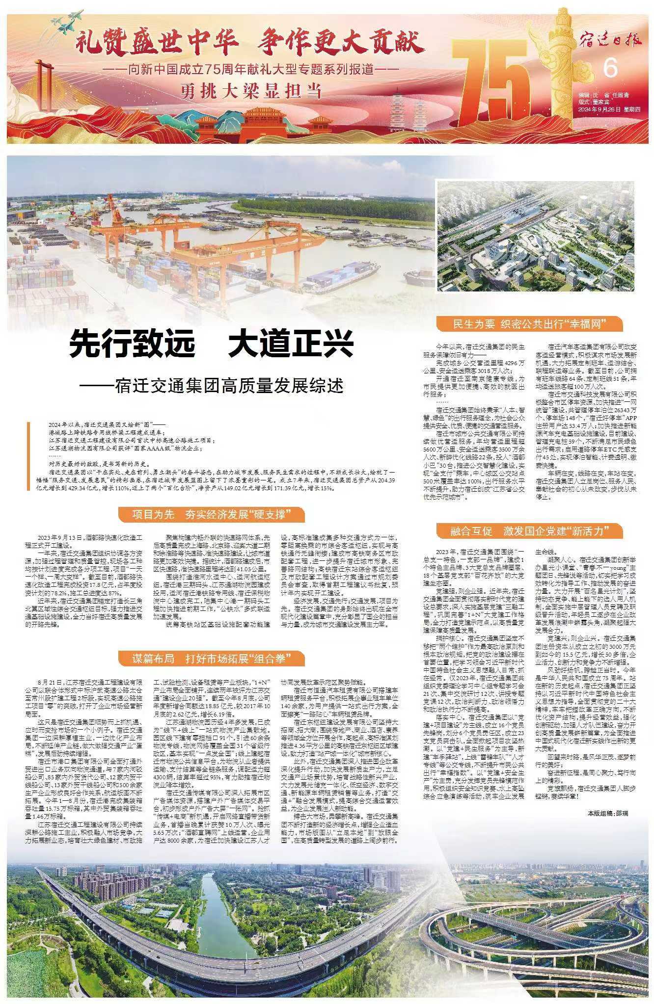 锚定打造长三角北翼区域性综合交通枢纽目标,强力推进交通基础设施建设,全力当好宿迁高质量发展的开路先锋。