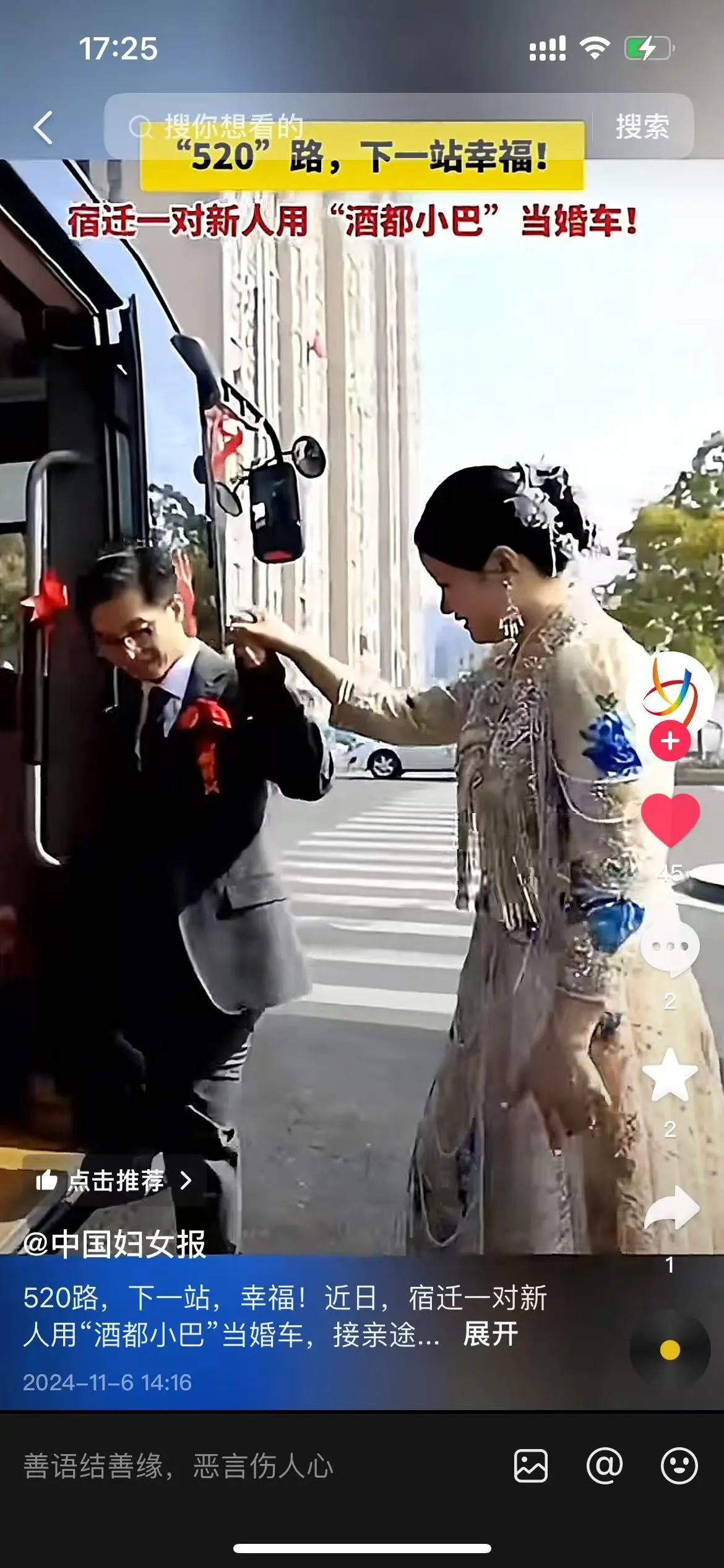 近年来,低碳出行、节能减排的理念逐渐深入人心,尤其在宿迁推出《人情新风“宿9条”》后,年轻群体更是将时尚、节俭、绿色环保理念融入婚事新办中。前两天,咱们宿迁就有一对新人,使用“酒都小巴”作为婚车,成为街头巷尾的美谈,更是在全网“火出圈”,先后被人民日报、中国青年报、现代快报等20余家主流媒体关注报道。