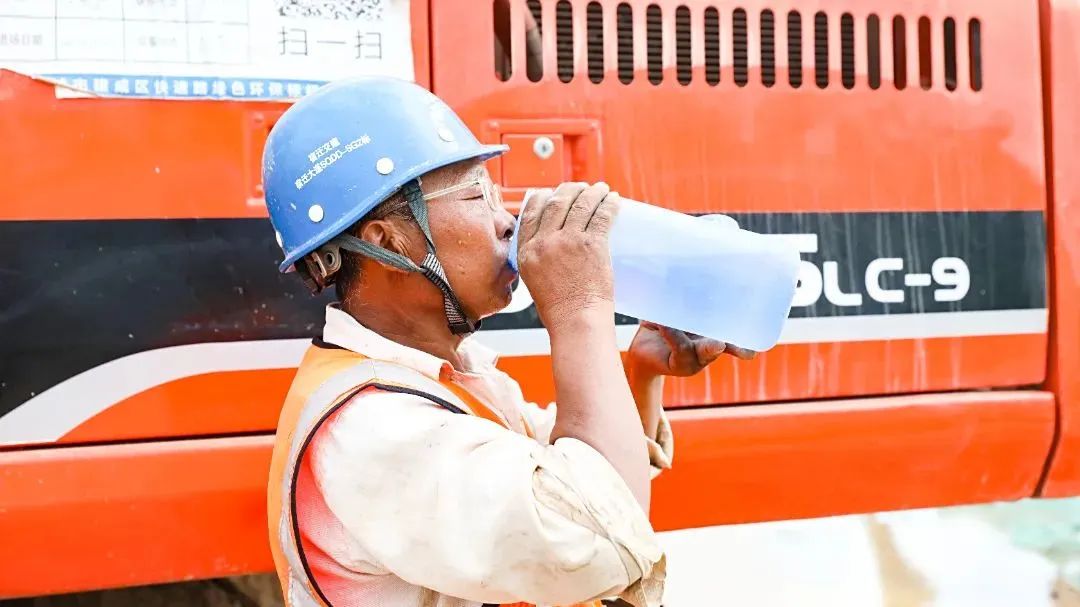 为应对酷暑,宿迁交建宿迁大道快速化改造工程2标项目部多措并举做好防暑保障:施工现场备足饮用水、藿香正气水、清凉油等物资,设置临时休息区供工人补水休整;合理调整作息,实行“早出工、晚收工、中午多休息”制度,避开中午高温时段,最大程度减少高温对施工人员的影响。