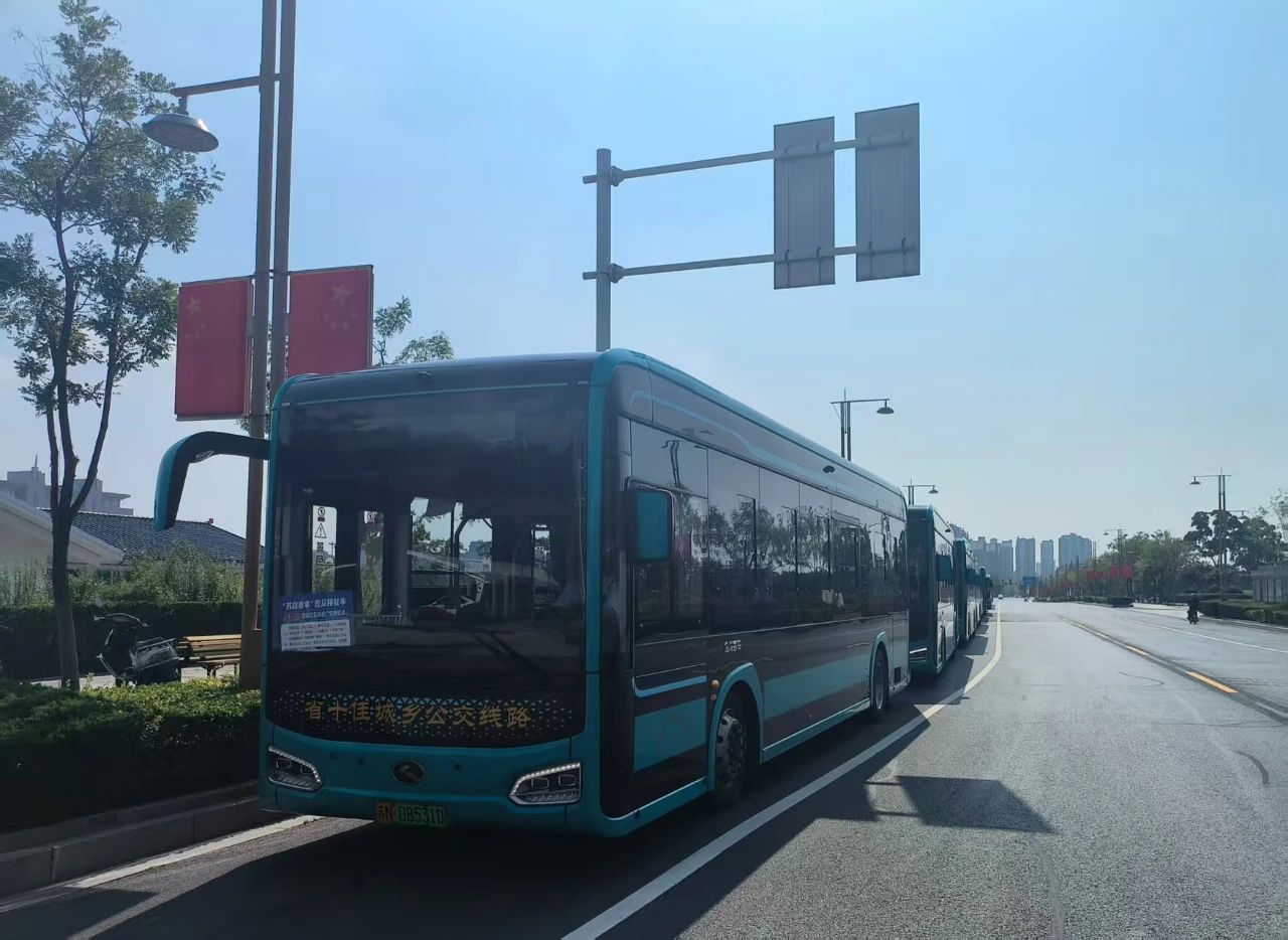 统筹调度的定制公交早已整装待发,志愿者们手持车辆编号牌在车旁引导。