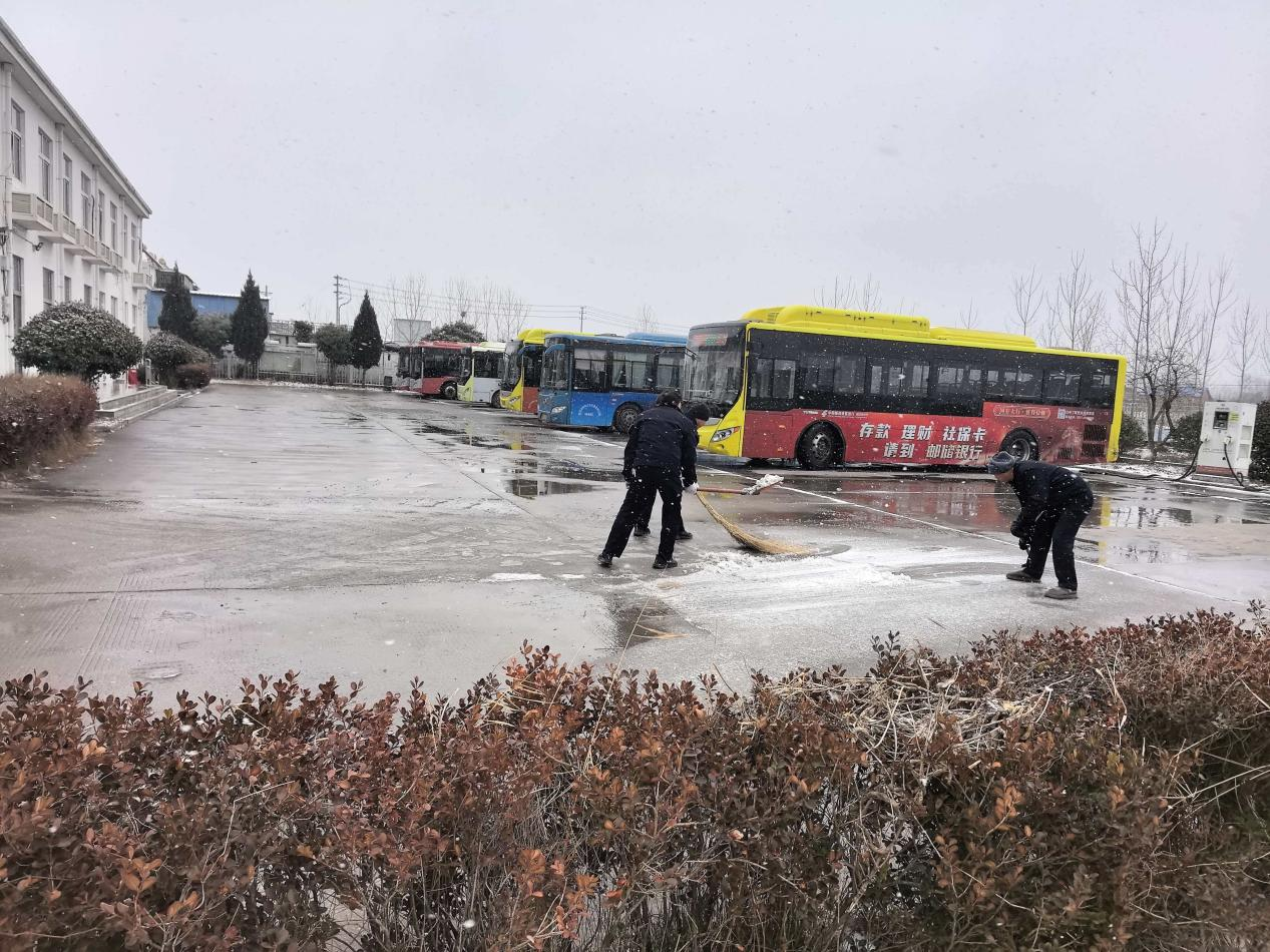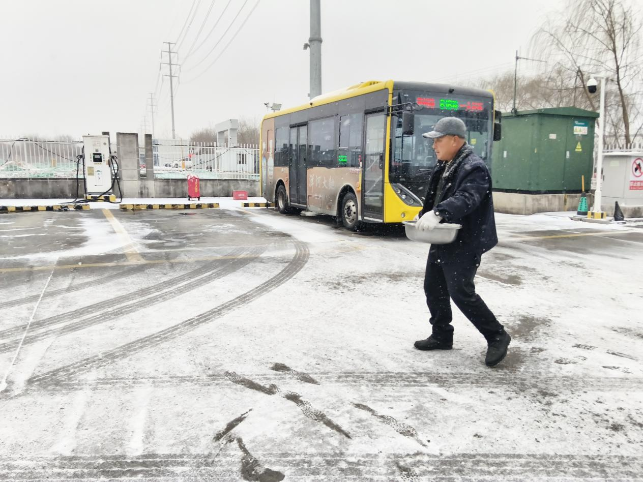 公交公司各场站后勤人员手持铁锹、扫帚,对场站出入口、车辆通道等重点区域进行除雪作业;驾驶员们也利用发车间隙,清理车辆周边积雪与薄冰,确保公交安全准点驶出,保障市民在雪天也能坐上放心车。