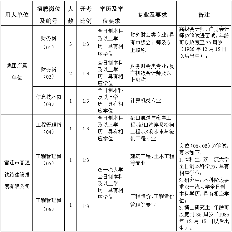 官网上进行公布。报名成功的考生登录原报名网站打印准考证。笔试内容为岗位专业知识和技能,不指定辅导用书。工程管理岗(05、06)免笔试。