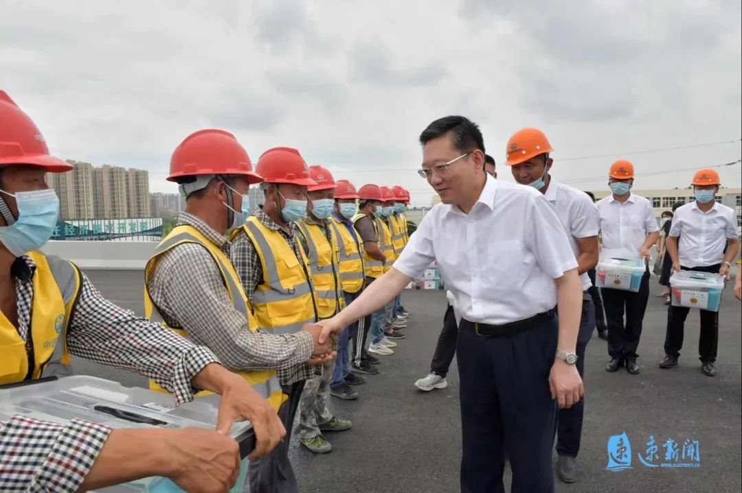7月7日,市委副书记、统战部部长杭海至北京路快速化改造工程建设现场,开展夏季安康“三送”活动,慰问一线工作者。市人大常委会副主任、市总工会主席徐勤忠参加慰问。市政协副主席、色漫
