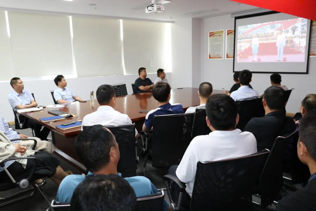 ▲公车调度中心、恒通租赁组织收看大会现场直播