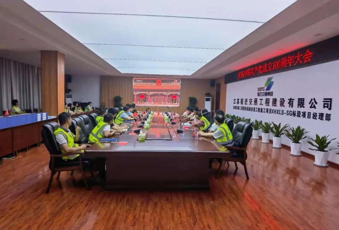 ▲徐淮路改造工程项目部人员收看大会现场直播