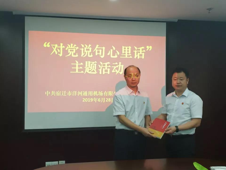 在中国共产党成立98周年之际,为深入贯彻落实习近平新时代中国特色社会主义思想和党的十九大精神,6月28日,宿迁市洋河通用机场有限公司党支部开展“对党说句心里话”主题活动,激励和鼓舞全体党员“不忘初心、牢记使命”,立足本职岗位,为宿迁交通运输事业发展贡献力量。