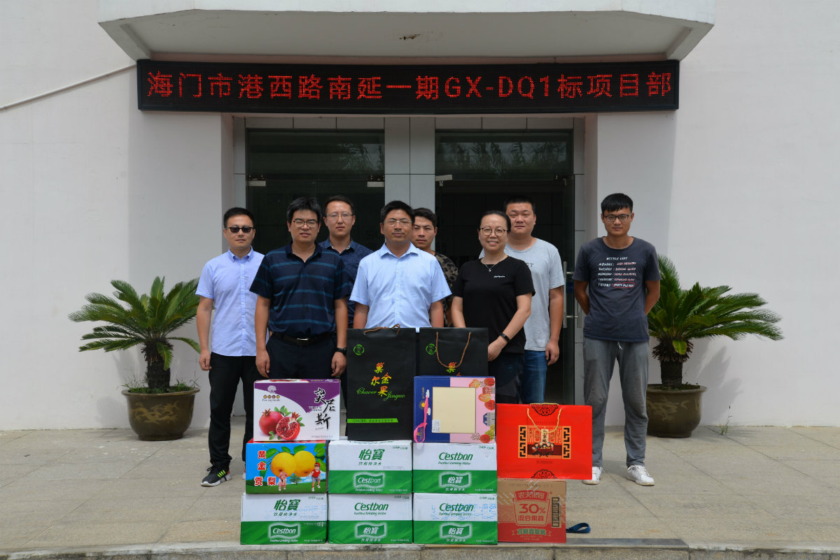 2019年9月11日,适逢中秋佳节前夕,公司党总支组织工会等部门赶赴海门市,深切慰问仍奋斗在海门港西路大桥项目一线的公司员工,并给他们送去月饼、水果等节日礼品以及公司衷心的节日问候。