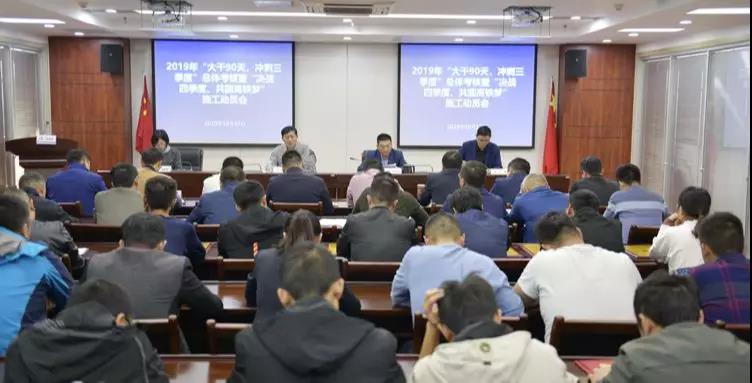 宿迁市高铁配套工程项目建设已全面进入收尾阶段。为充分调动广大建设者的积极性和责任心,积极推进各项工作,圆满完成既定目标,10月17日,高铁公司召开2019年“大干90天,冲刺三季度”总体考核暨“决战四季度、共圆高铁梦”施工动员会。