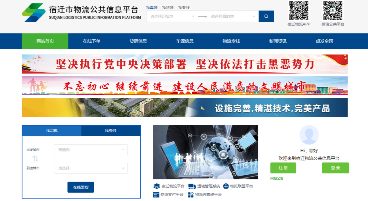 依托江苏通湖物流园线下实体开发建设的宿迁市物流公共信息平台,是以互联网物流信息服务平台为中心,以web、APP等方式快速打造标准化、全国性运输网络,为全市范围内的货主和各加盟实际承运人提供互联网运输服务,推进宿迁市物流行业在数据交换、电子商务、金融结算等在内的物流信息交互系统,有效降低宿迁市商贸、电商企业商品流通过程中的物流成本。