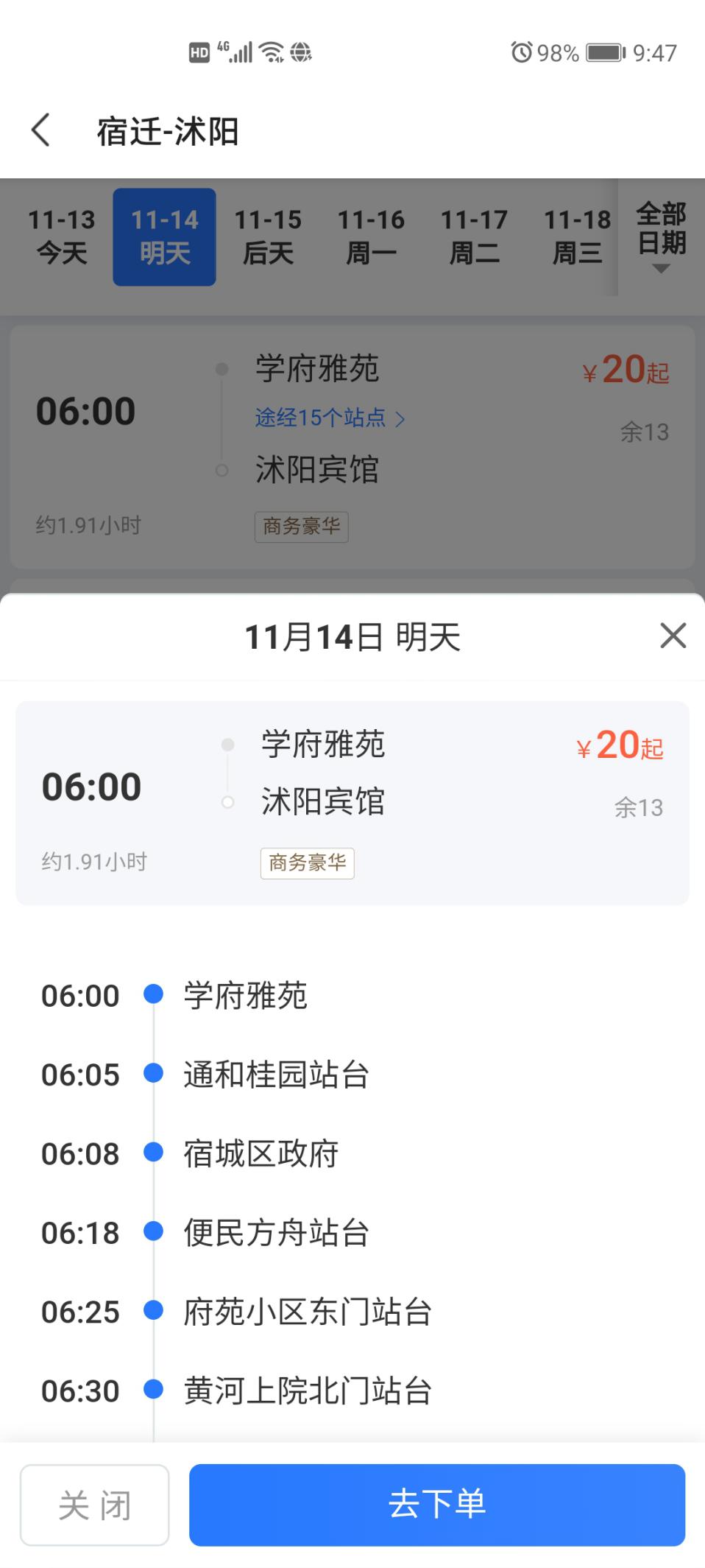 为更好地满足广大旅客乘车出行需求,11月13日起,宿迁汽车客运站至沭阳定制班车正式开通。