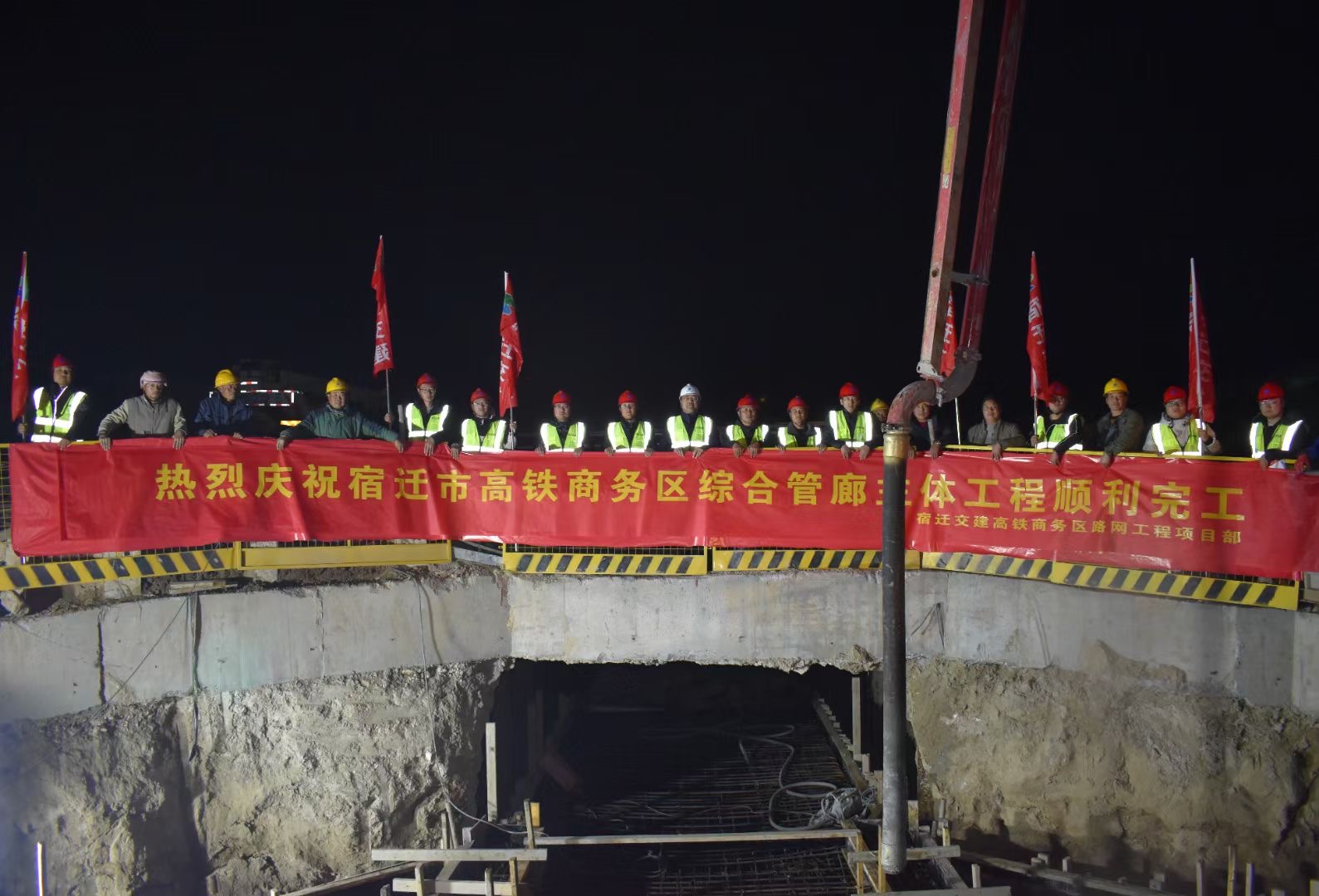12月6日,随着最后一段侧墙顶板的浇筑,宿迁市高铁商务区地下综合管廊项目主体结构顺利完工。