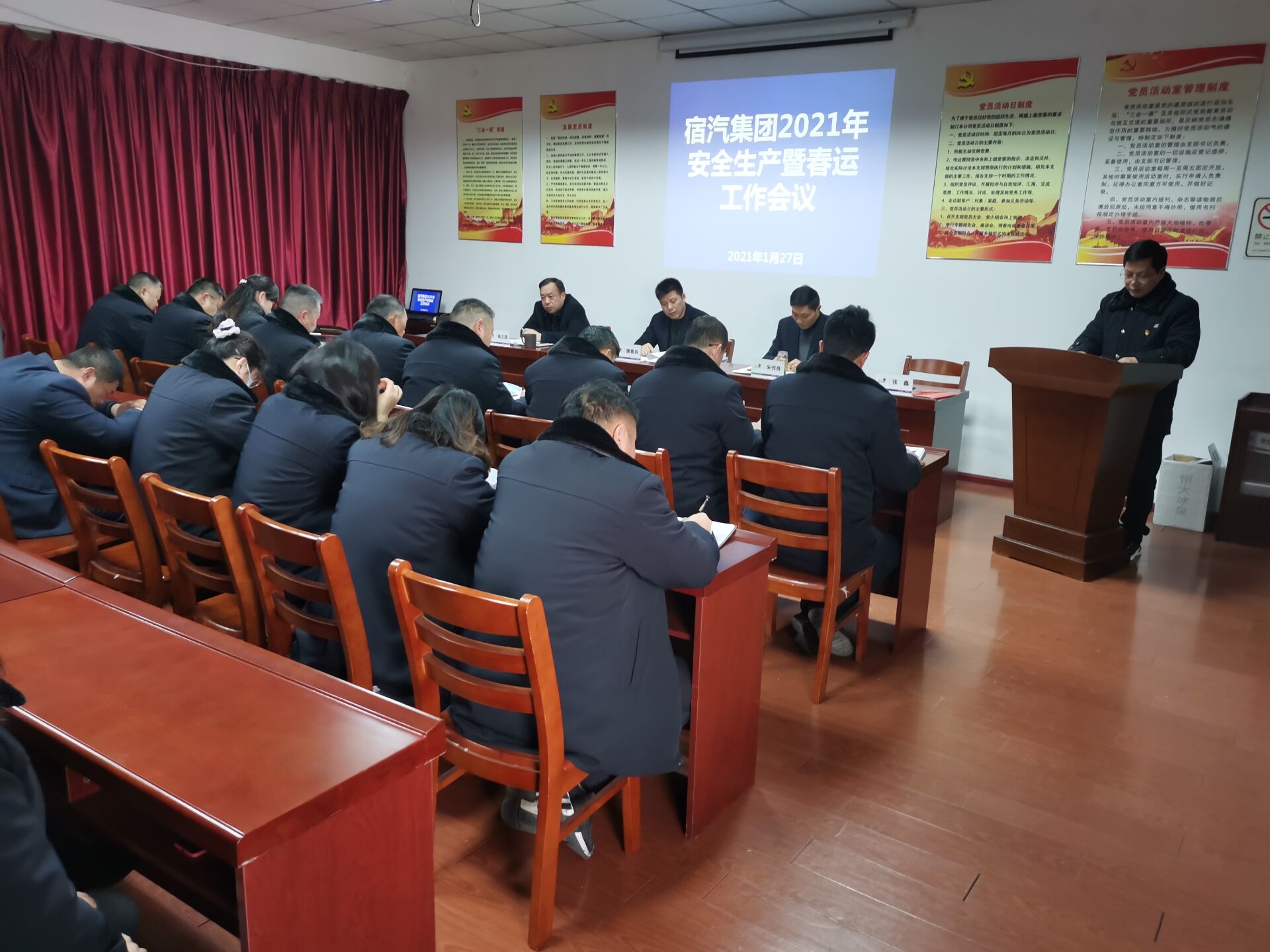 会议传达学习了相关会议精神并作安全生产工作报告。会上,运输公司、快客公司、客运站、安全处作了发言,各部门主要负责人递交了春运安全责任状。