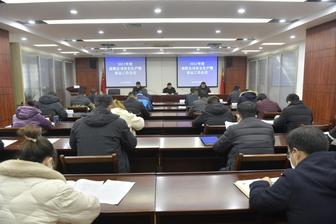2月2日,高铁公司召开安全生产暨春运工作会议,深入贯彻落实集团安全生产暨春运工作会议精神,全面总结2020年安全生产工作,研究部署2021年工作任务,动员公司上下统一思想、提高认识,用高标准、高质量工作来落实安全生产暨春运工作。