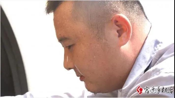 烈日下顶着近四十度的高温,为车辆做保养,卸轮胎,换刹车油,豆大的汗珠顺着李征脸颊流下,来不及用沾满油渍的双手擦一擦,尽管这样李征丝毫没有一点马虎。