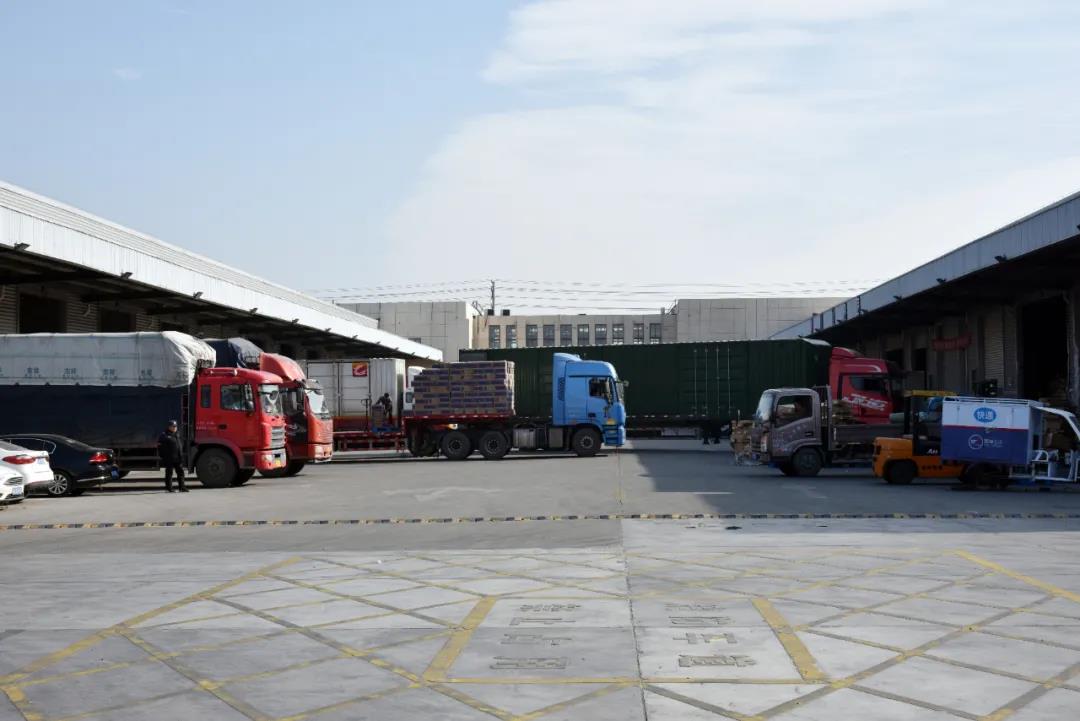 2月10日下午,在通湖物流园零担档口处,多名装卸工人正热火朝天地搬运着一箱箱货物。这几车货物刚落地宿迁,即将从园区内分装发往全国各地。