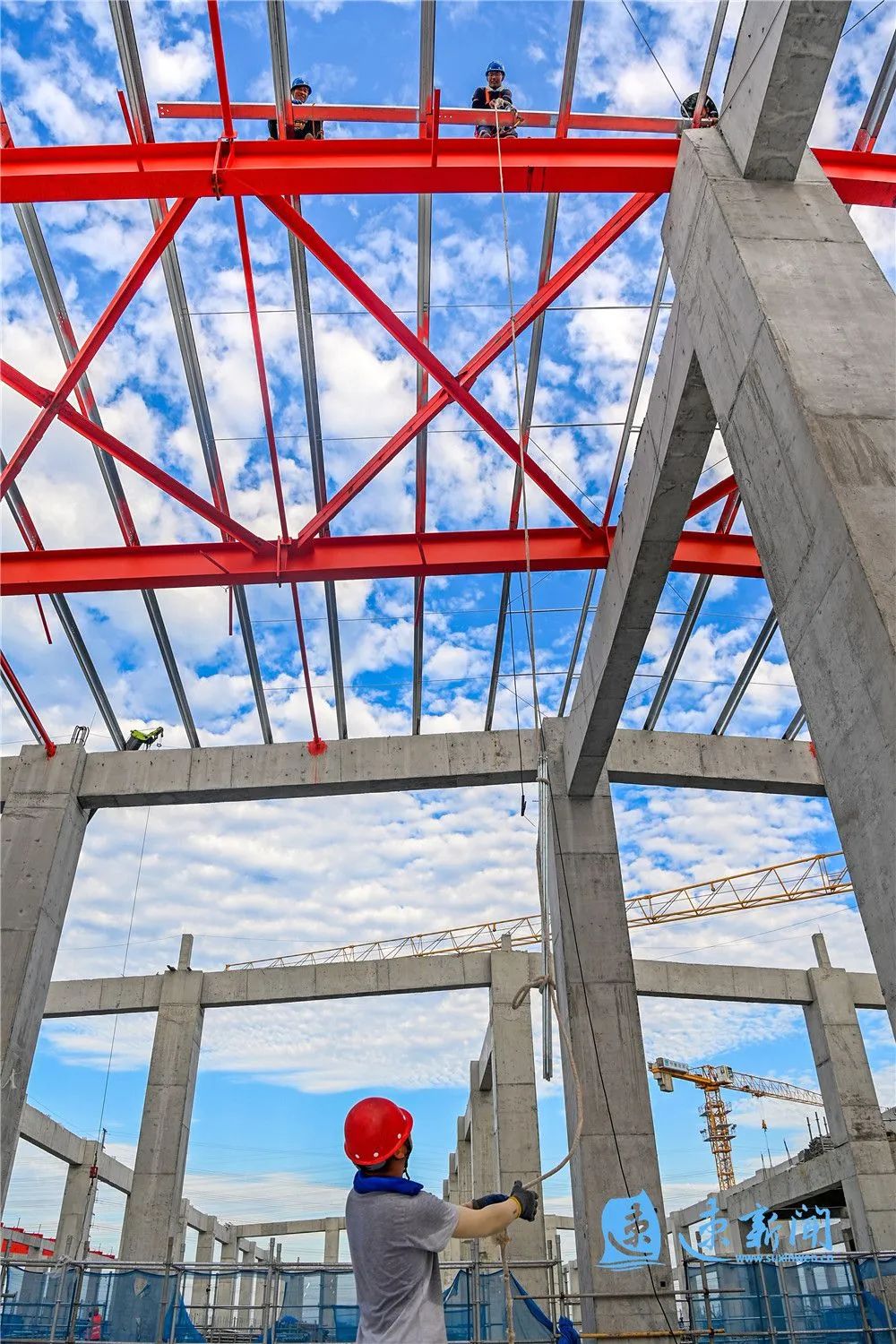 据悉,江苏通湖物流园二期工程位于宿迁经开区,规划建设了物流管理中心、仓储中心、分拣中心等功能板块。目前正在推进卸货平台主体施工、物流管理中心基础施工、钢结构屋面梁吊装、路基土方等作业,预计今年年底前全面建成并交付使用。项目建成后,将对宿迁提升物流运营效率、降低物流综合成本、优化物流空间布局、促进工商贸企业发展起到积极作用。