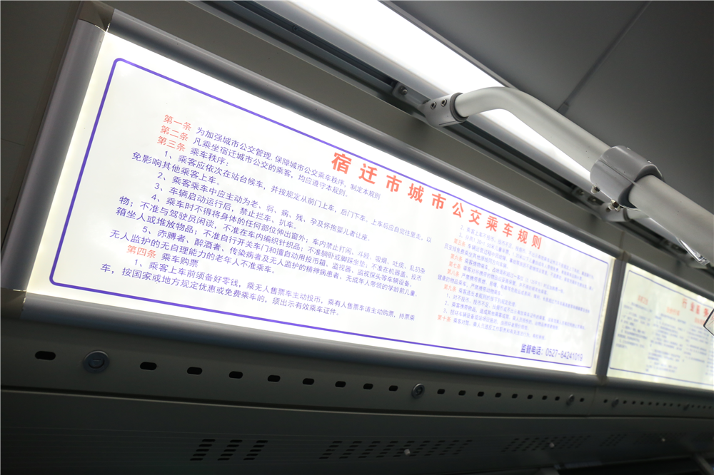 浅蓝色和暖黄色的车身涂装,超大前置车窗,紧凑的车厢布局,大方美观的内置灯箱宣传画面,完美诠释了颜值即战斗力。为提高乘客出行舒适度和满意度,公交公司一手精心布置车厢内饰,安装向善向美、共享文明的公益广告画面,悬挂体现色漫文化