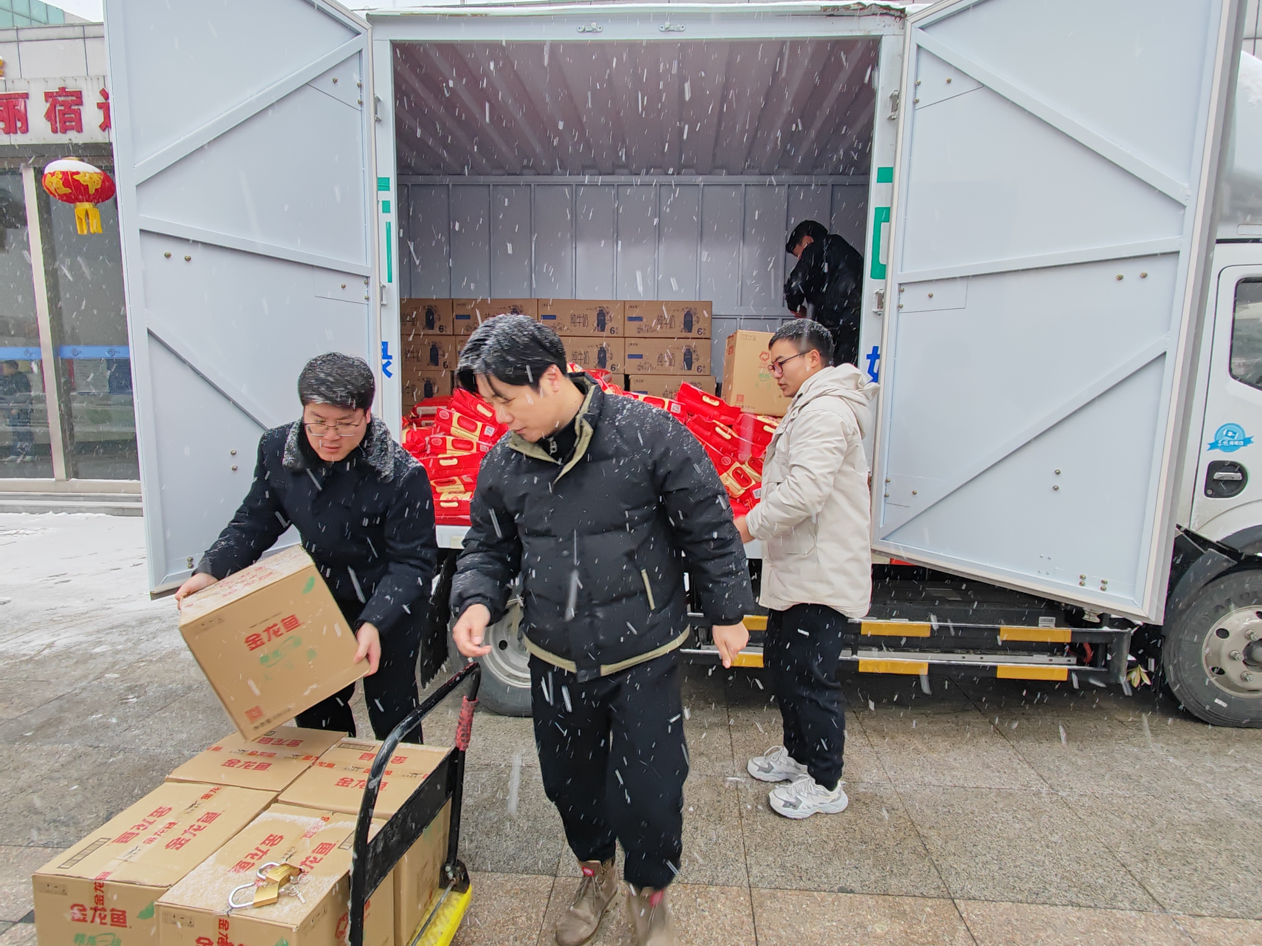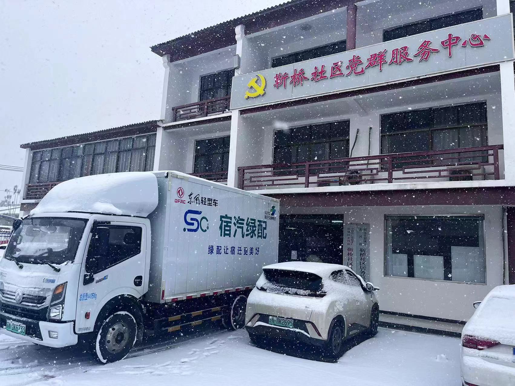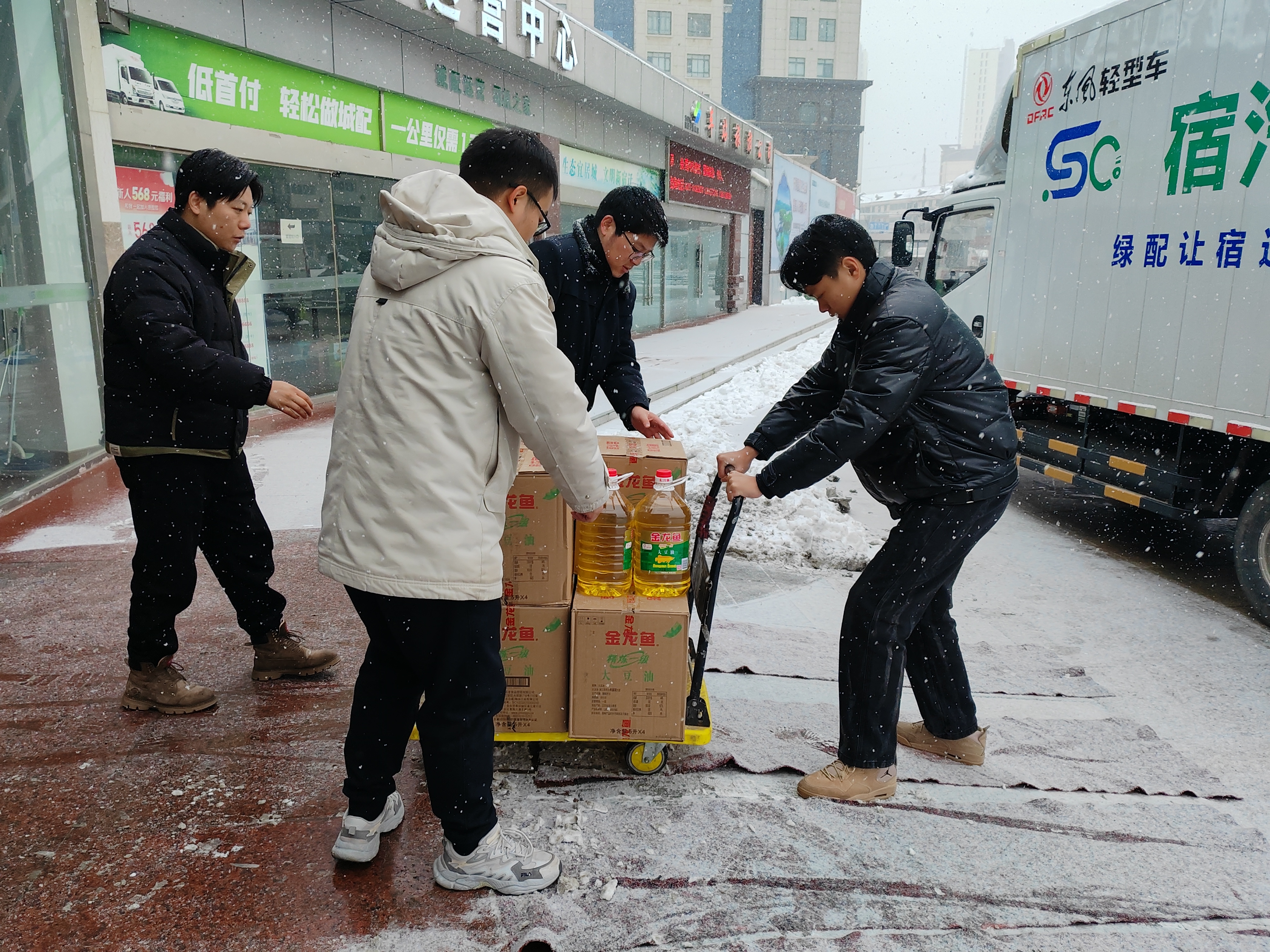 2月4日,新一轮强降雪来袭为做好冬季恶劣天气物资保障工作宿汽鸿雁快货物流公司顶风冒雪畅通物流货运保障大通道