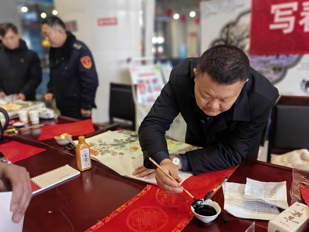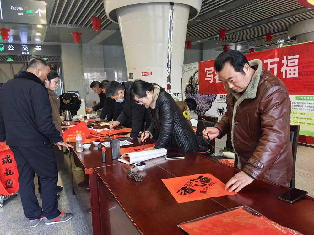 活动在公交综合服务中心调度站、宿迁高铁公交枢纽站、雪枫公园公交枢纽站三处公交场站开展,10位书法爱好者现场挥毫泼墨,以笔墨承载祝福,用爱心传递温度,不一会儿,一副副寄托着祝福的春联,一张张满含祝愿的“福”字,在他们手中写就。前来领春联的市民、职工络绎不绝,或是欣赏观摩,或是拍照留念,大家手持春联,笑容满面,浓浓的年味扑面而来。“传统文化要传承,这样的春联比在外面购买的更有意义。”领取春联的市民发出赞叹。