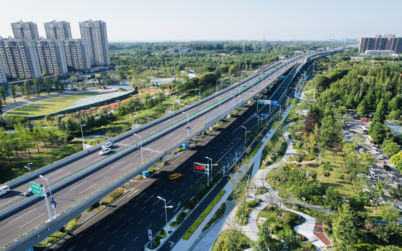 此次高铁公司获奖的“城市预制装配式桥梁高性能结构体系与快速建造技术研究”主要应用于宿迁市迎宾大道二期快速化改造工程,预制装配率达到85.4%,成为江苏省首个全装配式城市快速路改造项目。实施预制装配、智能建造不仅实现了结构轻量化、设计集约化、拼装高效化、连接长效化、管控智能化,而且能够满足城市密集区高架桥建设对环境干扰少、施工工期短、耐久性能好、安全韧性强的总体要求。经中国交通运输协会组织专家委员会鉴定,该成果总体上达到国际领先水平,经济社会效益显著,推广应用前景广阔。迎宾大道二期快速化改造工程作为宿迁市快速路网“二环十射”的重要组成部分,项目建成通车后,极大缓解了中心城区的交通压力,增强了中心城市集聚和辐射功能,在2023年度市政府100个民生实事项目中获得好评率99.5%,位列第二。