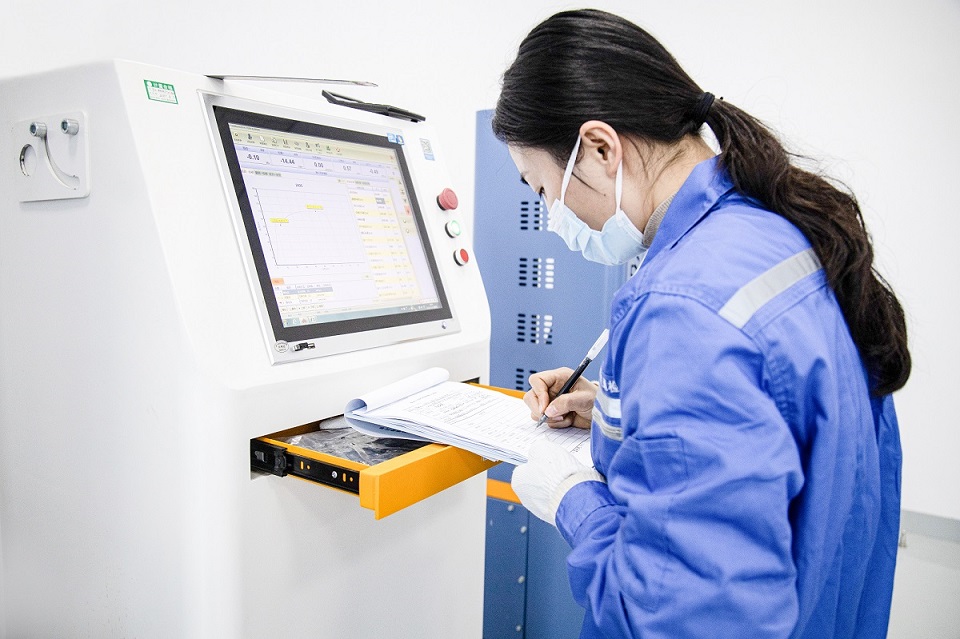 “以混凝土原材料为例,设计规范要求含泥量不高于3%,我们实际要求不高于2%,为制作混凝土构件或现场浇筑更好控制好变量。”桂佳佳介绍道,检测公司以工程建设序时进度为最高优先级,强调“前场+后场”同步驱动,在做到后场混凝土构件严格把关的基础上,仍然时刻紧盯前场施工中温度、湿度、晴雨天气、地质水文等各种环境因素,坚持“进度为先”,做到未雨绸缪,让前场施工人员作业放开拳脚。