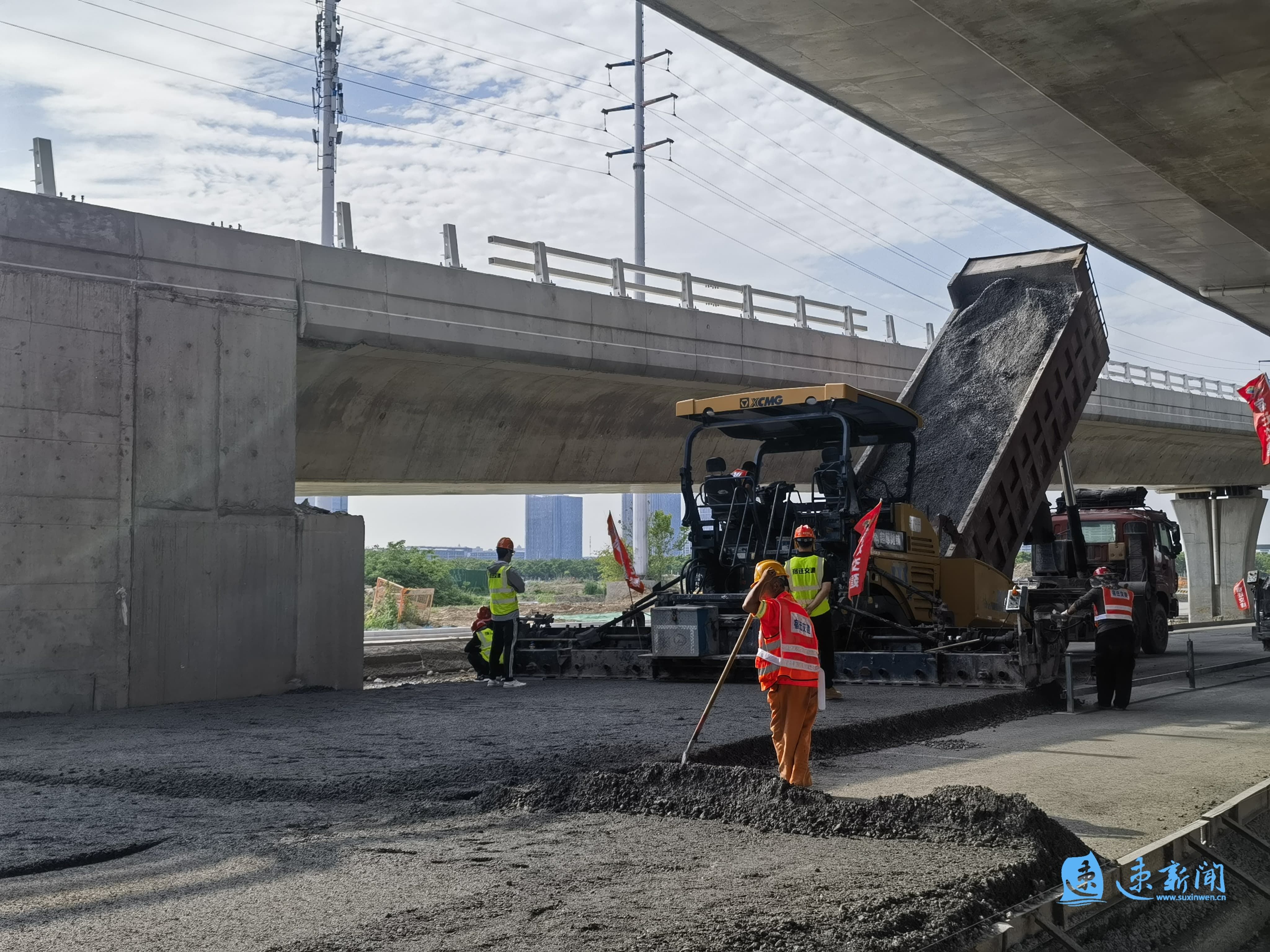 高空俯瞰建设中的酒都路快速化改造工程,这条南北走向的交通动脉已全线贯通,宛如一条绵延的钢铁巨龙,气势恢宏。桥下施工区域,两台摊铺机正匀速摊铺水稳层,压路机紧随其后来回碾压,现场机械轰鸣,一派繁忙有序的施工景象。截止目前,完成投资21.09亿元,占项目总投资的92%,预计年底建成通车。