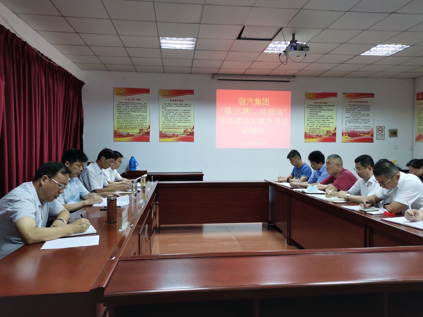 7月8日,宿汽集团召开“强‘三真’、比担当”作风建设大提升活动动员会。宿汽集团党总支书记、总经理唐善兵对作风建设大提升活动提出三点要求,要统一思想、高度重视,充分认识开展作风建设的重大意义;要抓住关键、把握重点,认真查改作风建设中存在的突出问题;要加强组织、凝聚合力,确保作风建设工作取得实效。他强调,各单位、各部门要深入开展“强‘三真’、比担当”作风建设大提升活动,坚持从严从实抓推进,驰而不息转作风,为推进公司经营发展再作新贡献。