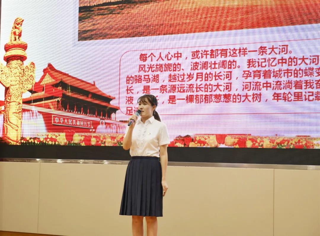 本次演讲比赛共有14名参赛选手,他们或结合工作实际,讲述自己的职业故事;或讲述身边典型和感人事例,以小见大、见微知著,展现社会主义现代建设的宏伟成就,表达自己深厚的爱国热情。 高铁通车的时间离我们越来越近,属于宿迁人民的高铁梦将不再是梦,这辉煌成绩的背后,活跃着许多可爱的人。高铁公司党支部的王俊然讲述了高铁一线建设者曾佳乐背后的感人故事:他看惯了夜间的白炽灯光,看惯了黎明送来每一道曙光,看惯了日夜的交替,看惯了高架桥夜间的现场施工。动情的演讲感染着现场的每一位观众,让观众发自内心地为奋斗在高铁一线建设者们点赞。