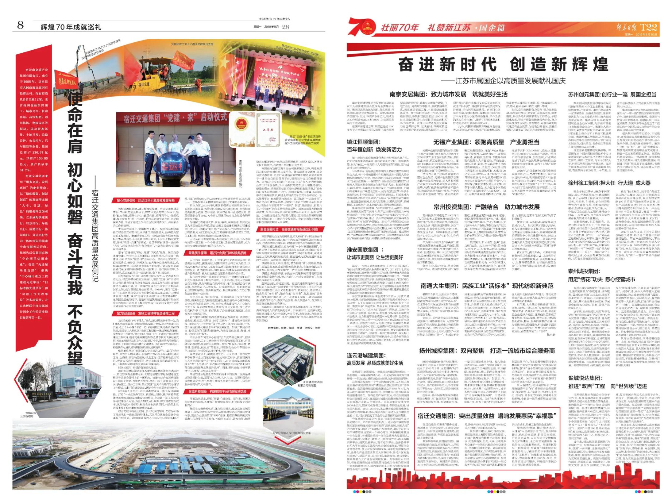 2019年,信息宣传工作在集团党委的正确领导下,紧紧围绕集团中心工作和重点工作,紧扣集团发展、改革和党的建设工作主线,通过报纸、网站、微信等媒体,弘扬主旋律、传播正能量,营造了浓厚的舆论氛围,取得了明显成效。其中,多篇信息被省国资委、市委办以及市政府办采用,《新华日报》《中共江苏省委新闻网》《中国江苏网》等多家省级媒体纷纷聚焦集团促发展、惠民生的切实举措,有力提升了集团的知名度、美誉度与社会影响力。