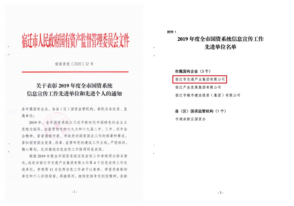 近日,宿迁市国资委发布《关于表彰2019年度全市国资系统信息宣传工作先进单位和先进个人的通知》,市色漫 以考核得分排名第一的好成绩,荣获2019年度信息宣传工作先进单位。