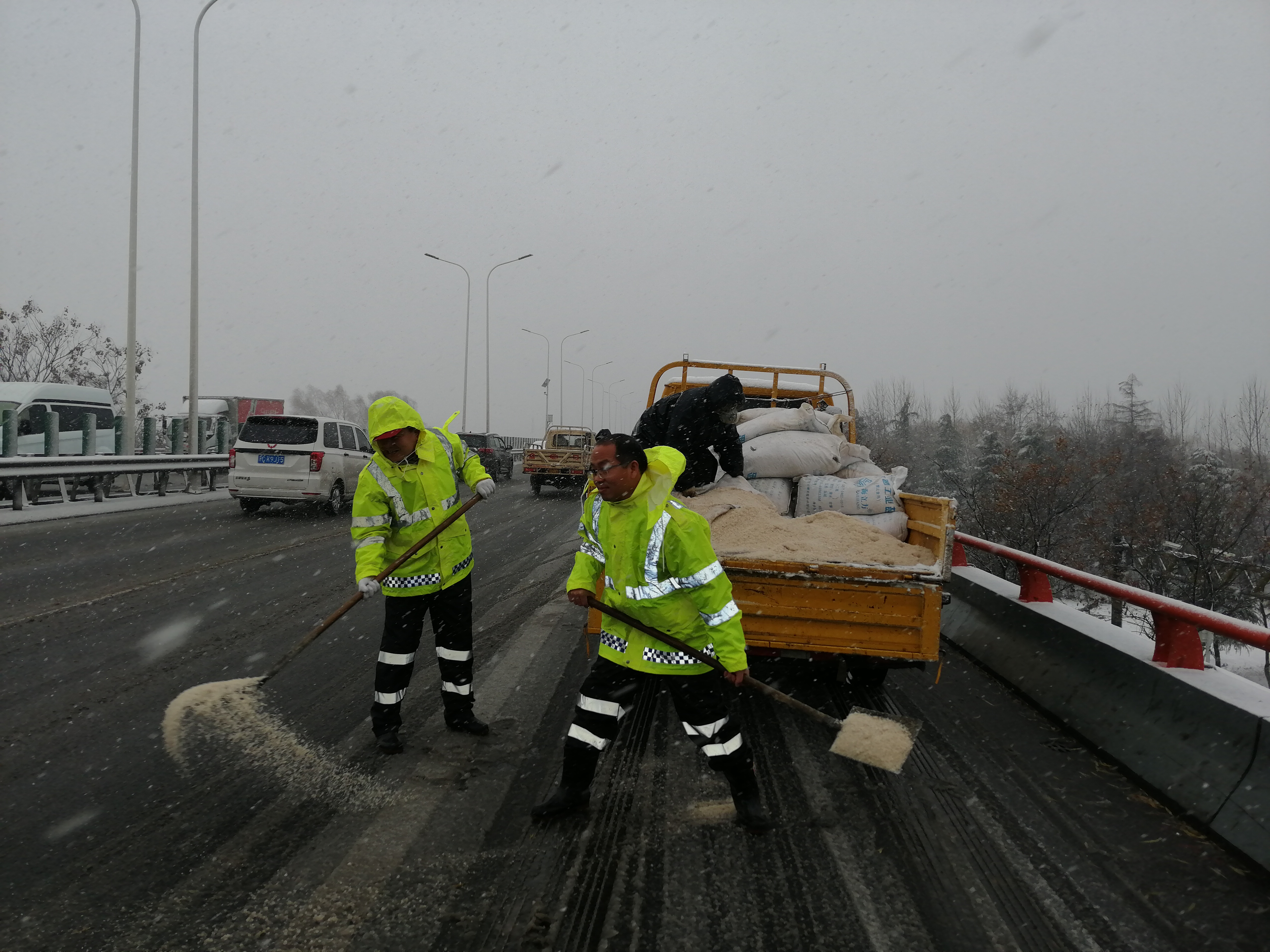 宿迁交建养护分公司迅速启动低温冰冻天气除雪保畅应急预案,出动上百名养护路政人员,对养管路段危险、易结冰路段进行安全隐患梳理排查,对发现的冰雪覆盖路段及桥梁、垭口、急弯、陡坡、易冻易滑等重要路段及时撒布融雪剂,并对部分路段积雪进行清扫。