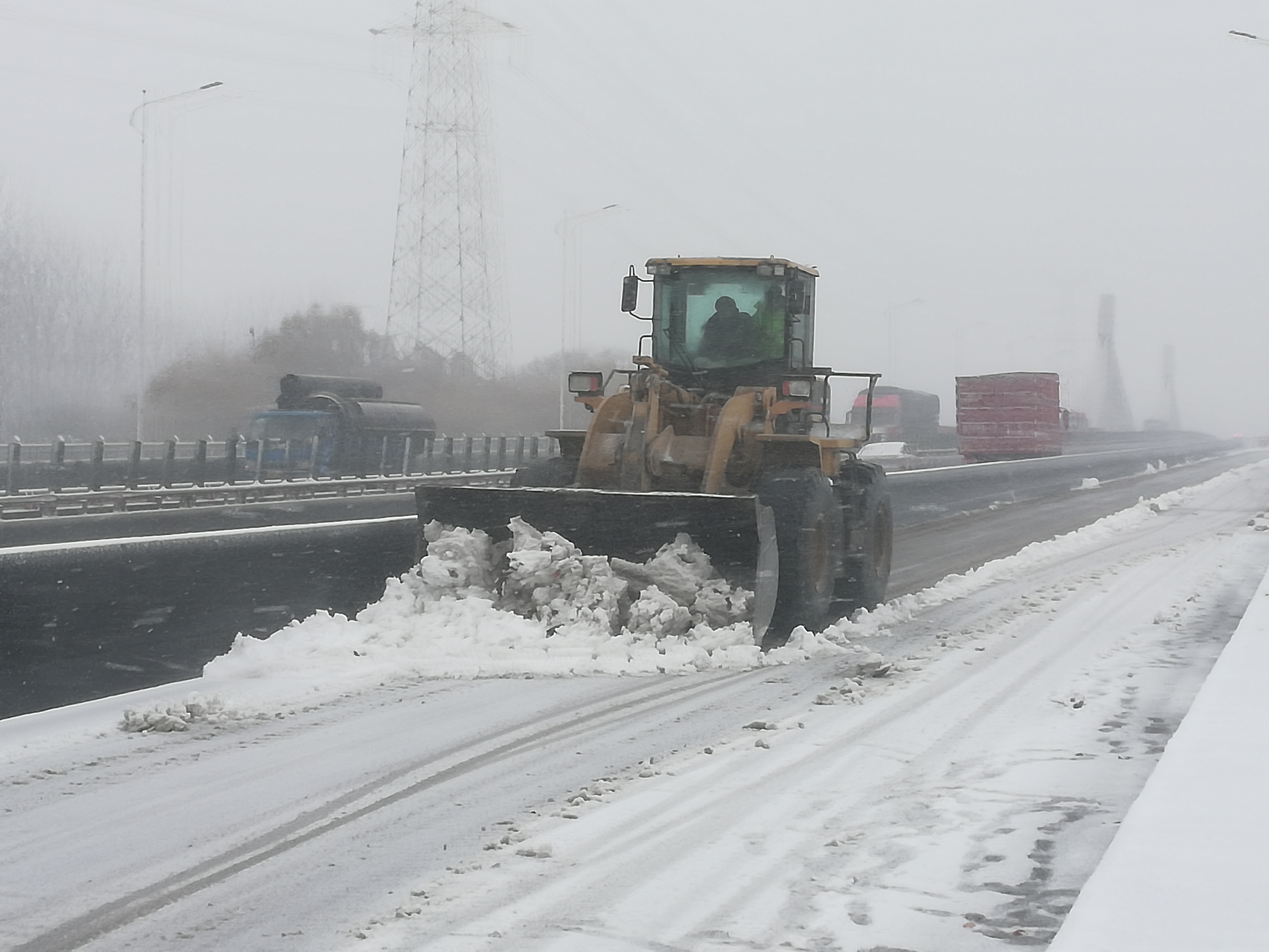 截至目前,共出动除雪装载机6台,高压水车2台,运输车辆6台,消耗融雪剂35吨、融雪盐45吨,出动除雪人员130人次,目前三号桥、七号桥、发展大桥等主要桥面无积雪、结冰。交建人始终牢记自己的初心和使命,不畏严寒、不惧风雪,用自己的坚守和努力,守护着公路交通安全畅通。